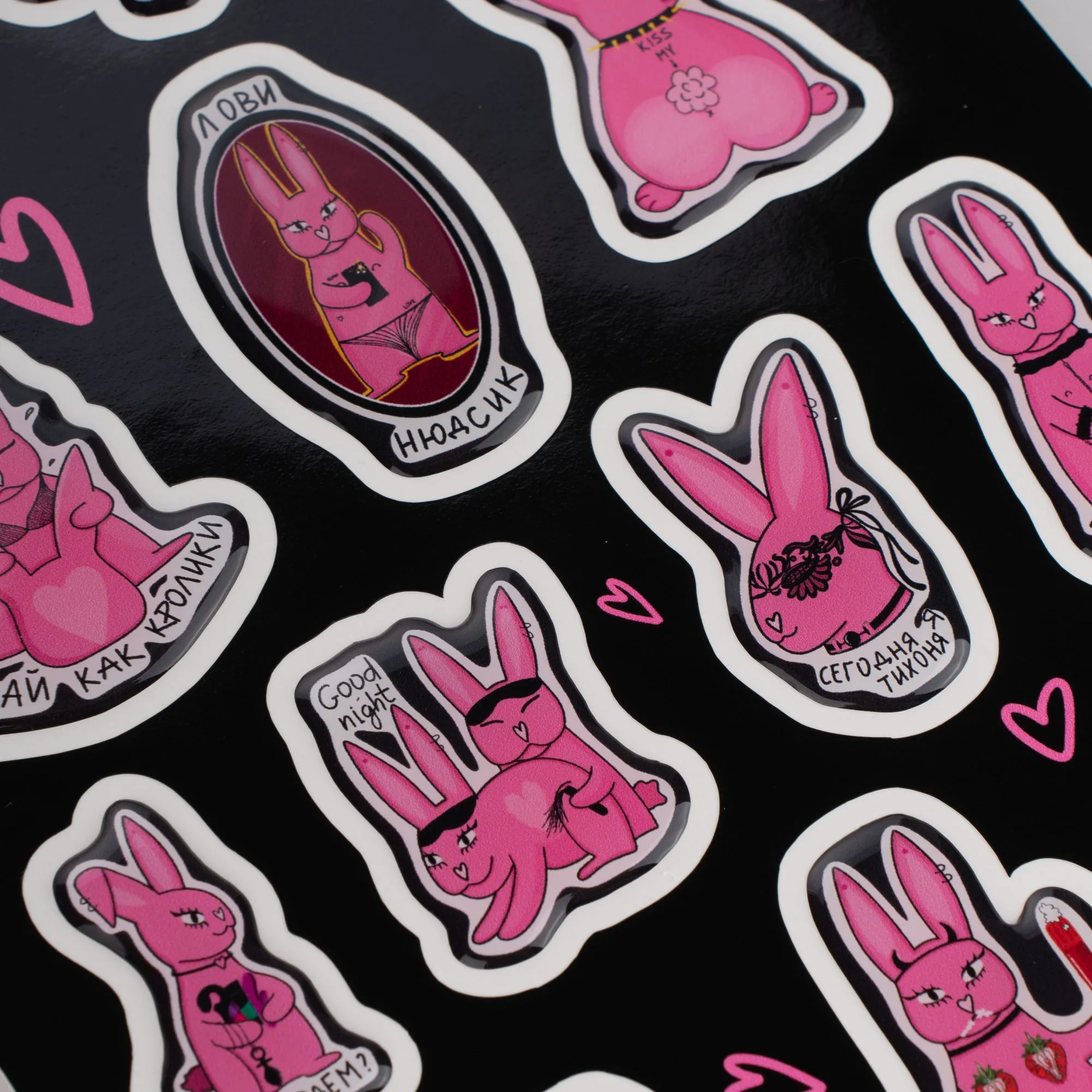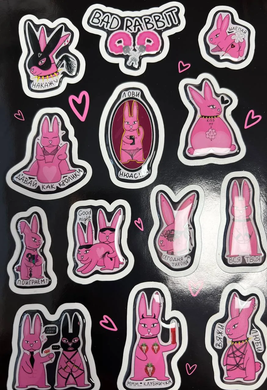 Добавьте нотку игривости и шутливого настроения с нашими уникальными стикерами "Pink Rabbit"! Этот набор создан для тех, кто ценит креативность, яркие эмоции и лёгкую провокацию.