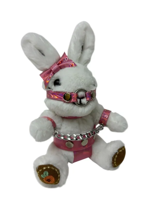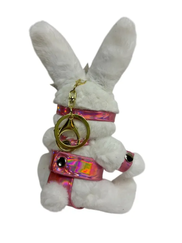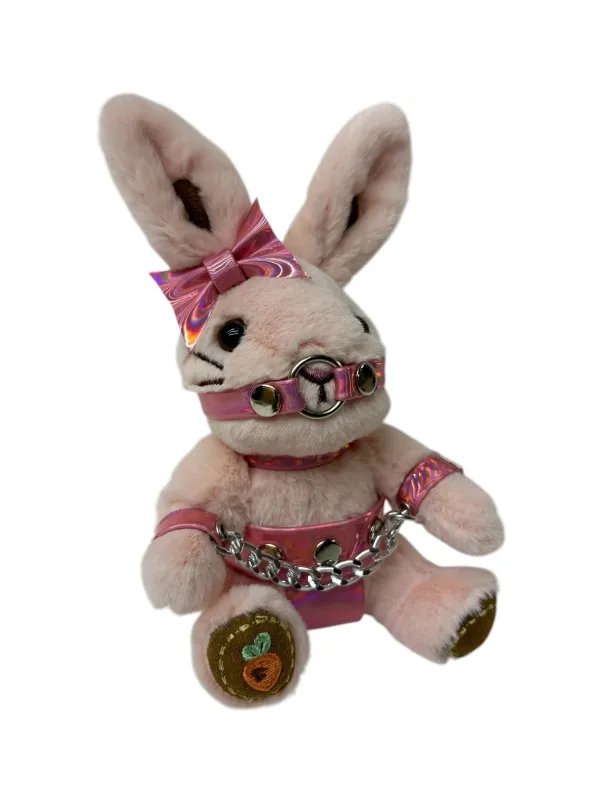 Этот БДСМ зайчик точно любит пожестче, поэтому его точно не напугать кляпом или наручниками! Такой подарок вызовет бурю положительных эмоций и поднимет настроение. Игрушка оснащена карабином и кольцом, её можно носить в качестве брелока на ключах или сумке. Высота зайчика 18 см, очень удобный размер. Костюмчик выполнен из розовой голографической эко-кожи. Цвет зайчиков в ассортименте.