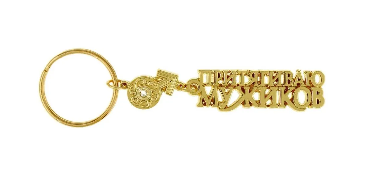 Металлический брелок «Притягиваю мужиков» от российского производителя Сима Ленд станет прекрасным подарком к любому празднику или просто забавным сувениром без повода. На колечке размещается золотистая подвеска в виде соответствующей надписи и миниатюрный элемент в виде знака мужского начала. Брелок отлично подойдет в качестве украшения для ключей от дома, работы или автомобиля.