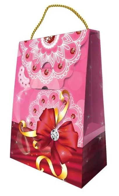 Изделие дополнено шнурком для удобства переноски. В такой упаковке «никто не увидит», что за сюрприз находится в нём. Пакет выполнен из плотного картона, благодаря чему не мнётся и держит форму.