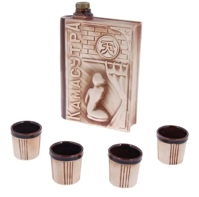 Штоф — это сосуд для крепких спиртных напитков. Он предназначен для хранения вина, водки, коньяка и настойки. К нему прилагаются оригинальные рюмки соответствующей тематики.Набор изготовлен из керамики — прочного материала, способного сохранять температуру жидкости до 4 часов, поэтому вы сможете наслаждаться охлаждёнными напитками даже во время долгих застолий.