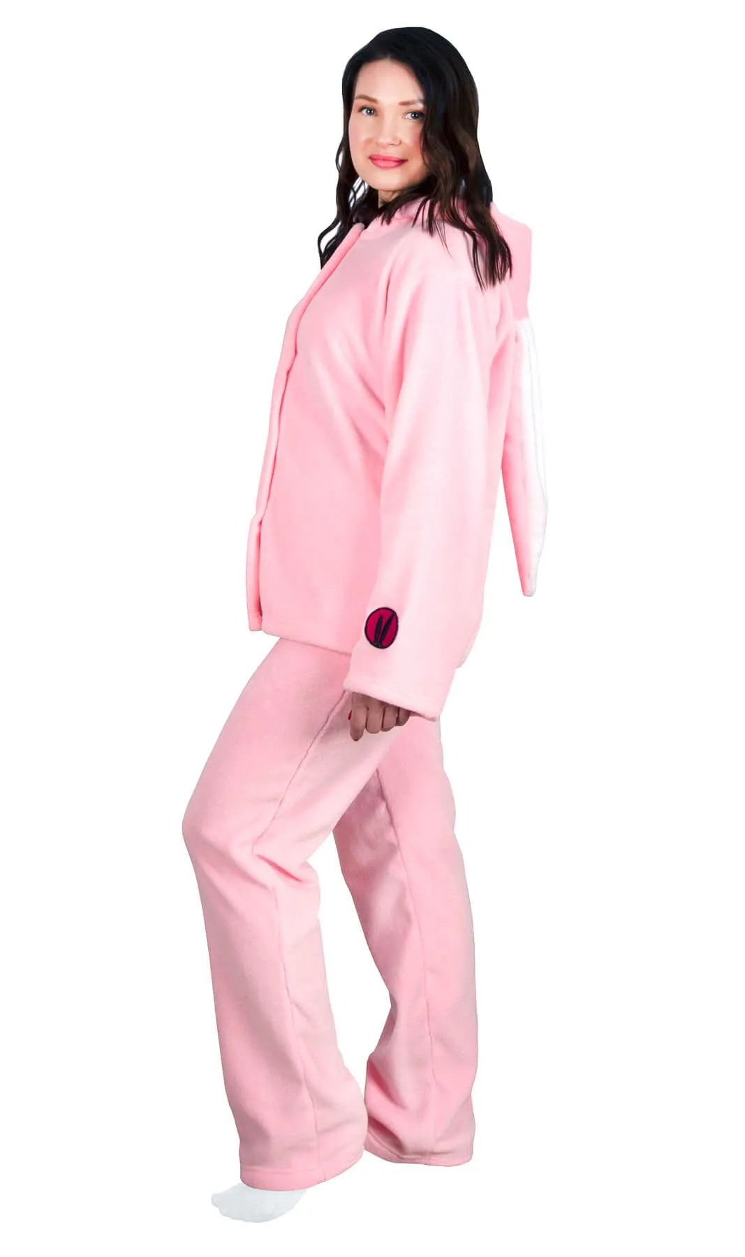 Весёлая пижама в виде зайки - это уютное и оригинальное решение для дома. Комплект состоит из штанов и толстовки на молнии с мордочкой и ушками на капюшоне. Она подойдёт для пижамных вечеринок, карнавалов и просто повеселит вас! Материал пижамы легкий и мягкий, как шубка у зайчика, в нём не жарко в тёплые дни, он практичен в носке и долго держит свой эстетический вид. Унисекс.