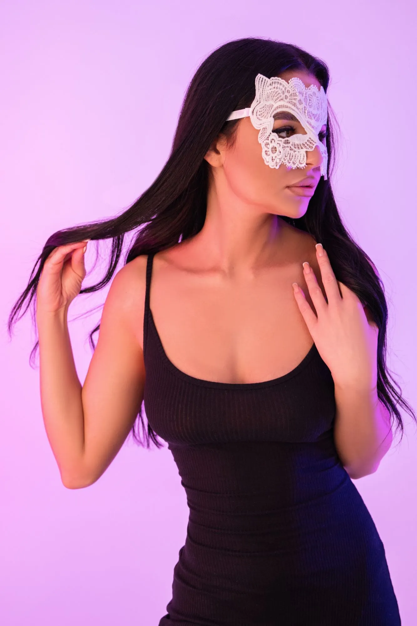 Примерь на себя образ утонченной Маркизы с белой кружевной маской и сделай вашу романтическую встречу незабываемой! Этот пленительный аксессуар станет не только украшением для Тебя, но и сексуальным якорем для Твоего партнера. При бережном уходе (ручная стирка и накрахмаливание) маска надолго сохранит первозданный вид и будет радовать свою обладательницу при каждом ее использовании.