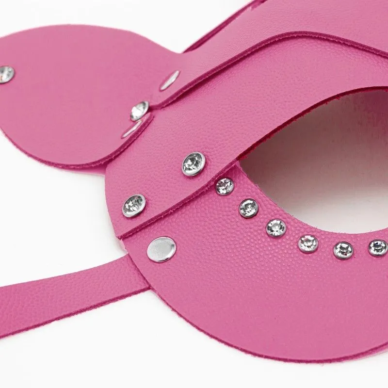 Изящная маска кошки из натуральной кожи розового цвета, украшена стразами. Надевая маску, мы можем дать свободу некоторым своим импульсам, можем их открыть партнёру. В этой маске вы почувствуете себя искусной соблазнительницей, грациозной сексуальной кошечкой и ваш романтический вечер плавно перейдёт в жаркую ночь. Кроме этого, маску можно использовать как карнавальную на различных мероприятиях. При помощи ремешка размер можно регулировать для комфортного ношения.