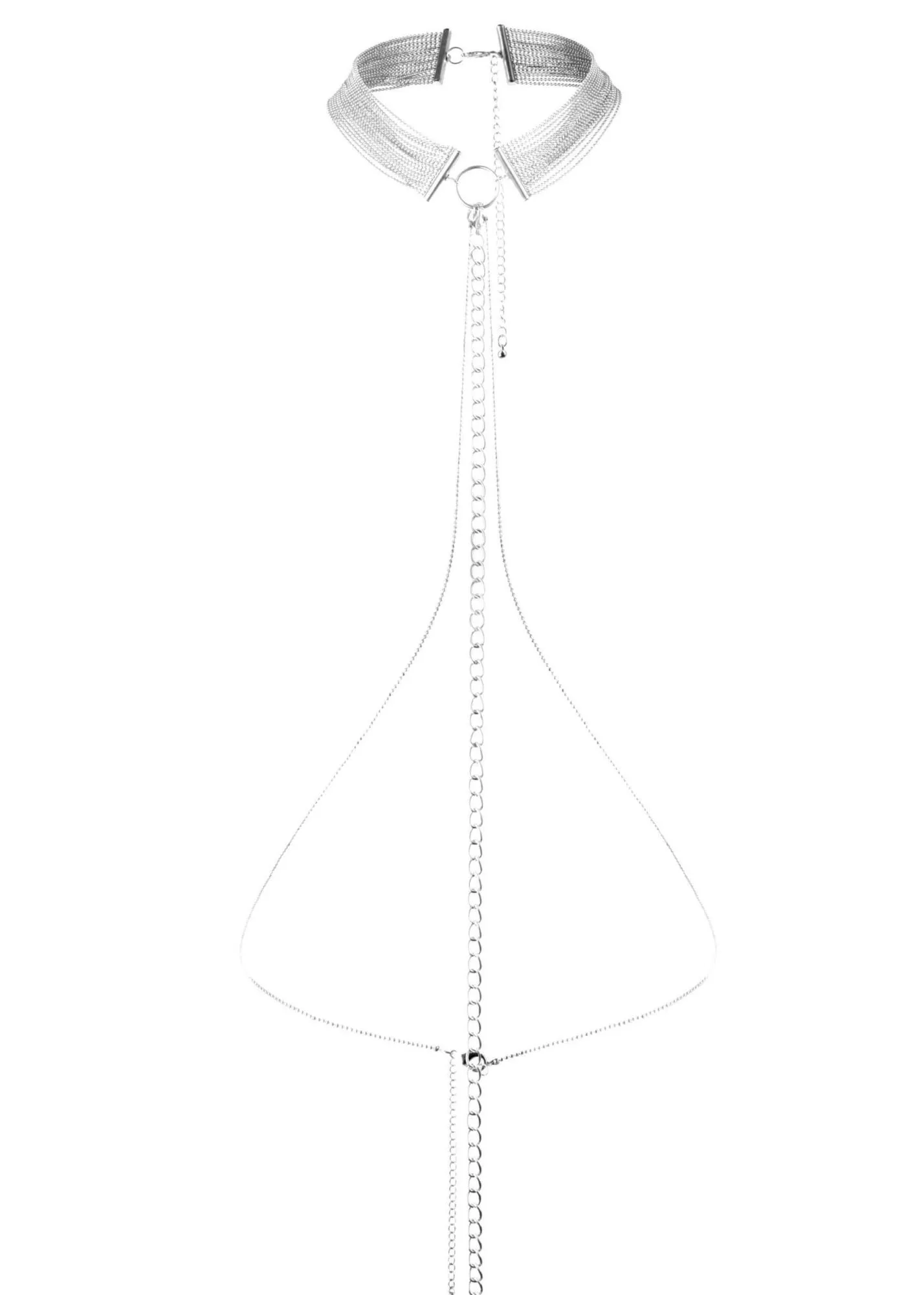 Элегантный чокер Metallic Chain Choker из серии Magnifique от бренда Bijoux Indiscrets - это необычный аксессуар, который можно использовать и как украшение, и как аксессуар для бондажа. Дизайн аксессуаров из серии Magnifique был навеян танцовщицами кабаре в Нью-Йорке двадцатых годов, чья чувственность и соблазнительность присутствовали в каждой детали их образа. При выходе в свет чокер подчеркнет Вашу элегантность и уникальный стиль, а в приватной обстановке с Вашим возлюбленным он превратится в оружие соблазнения. Используя карабины, к цепочкам чокера можно присоединять различные бондажные аксессуары, чтобы ограничить Вашу подвижность. Он отлично сочетается с наручниками из этой же серии. Чокер регулируется по длине.