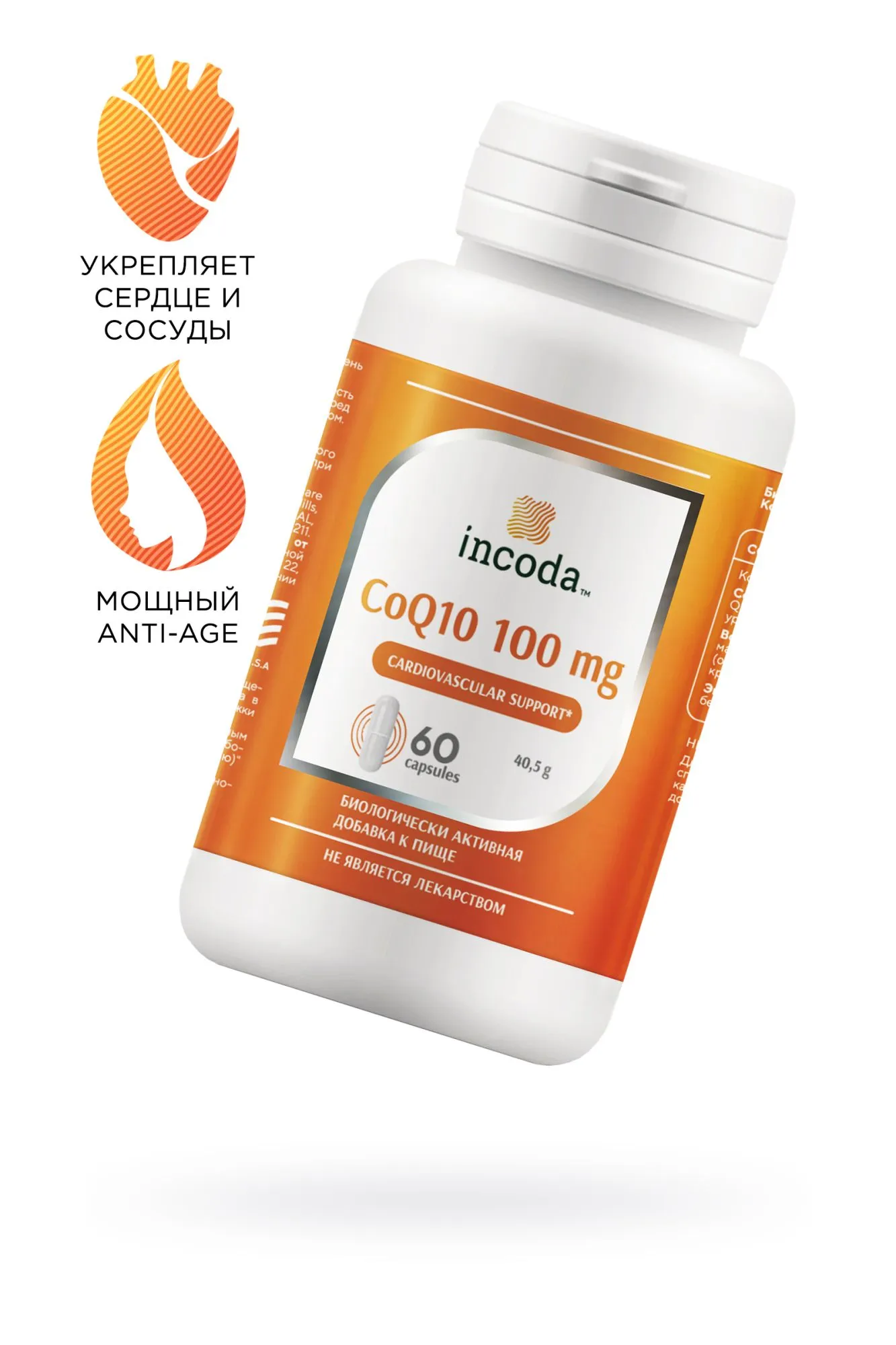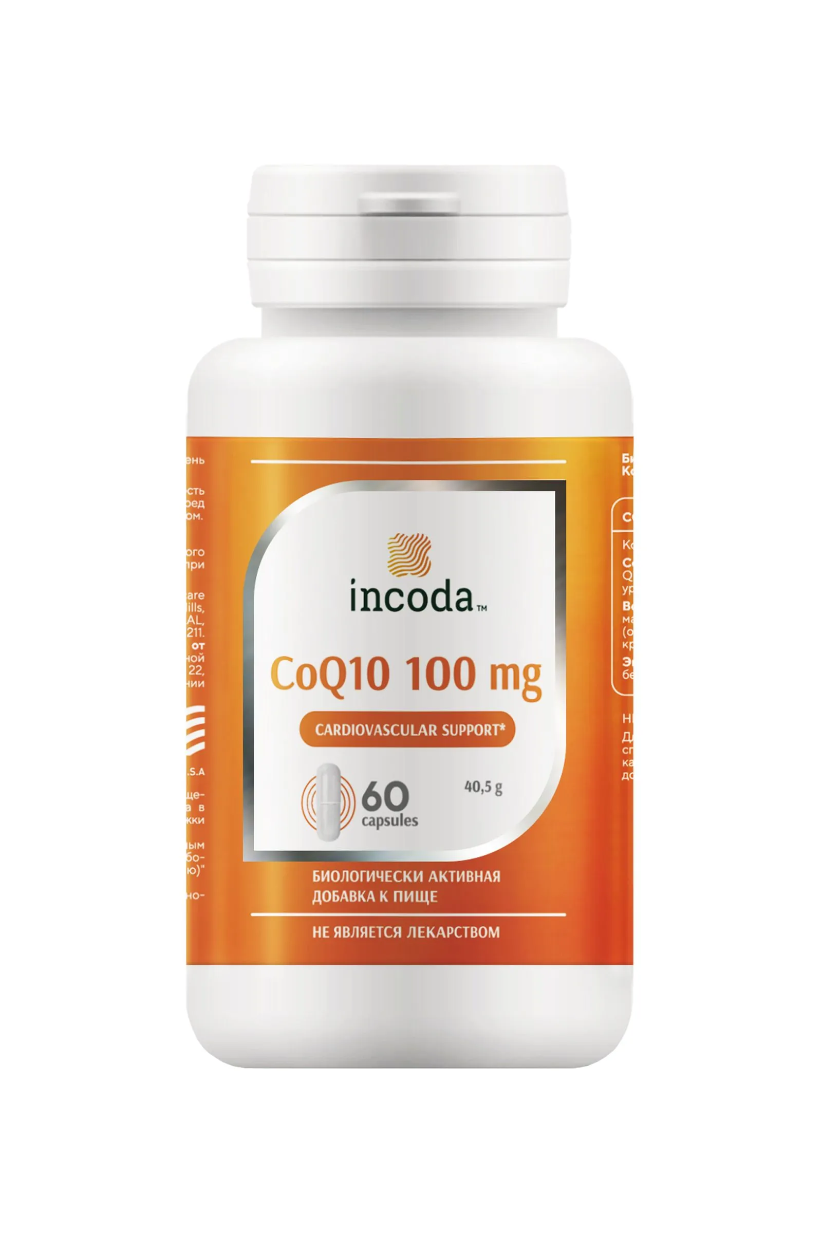 Биологически активная пищевая добавка Коэнзим Q10 производства Incoda – кардиопротектор, мощный антиоксидант и энергетик. Коэнзим Q10 – это источник энергии: восстанавливает утраченные силы нормализует работу организма оказывает положительное действие на мозговую деятельность, работу сердечно-сосудистой системы укрепляет иммунитет, повышает выносливость и замедляет процесс старения. В составе таблеток Коэнзим Q10 натуральные и безопасные вещества – убихинон 15 мг, дикальция фосфат, микрокристаллическая целлюлоза и вспомогательные компоненты. В одной таблетке содержится 50% убихинона от адекватного потребления этого вещества в сутки. Он принимает участие в выработке энергии и синтезируется самим организмом, участвует в выработке АТФ. Когда организм ослаблен синтез этого вещества недостаточен. При длительном дефиците Q10 развиваются ранние признаки старения (потеря упругости кожи, морщины), слабость, ухудшение мозговой деятельности, болезни сердца, легких и печени. Восстановление оптимального уровня убихинона в организме выражается в легкости, приливе сил, энергичности, нормализации сна, памяти и внимания. Улучшение самочувствия хорошо скажется на внешности. Показания к применению: Синдром хронической усталости Физические и умственные перегрузки Период восстановления после длительной болезни, хирургического вмешательства Часты простудные заболевания, ослабление иммунитета Хронические заболевания легких Нарушение мозгового кровообращения Сахарный диабет Нарушения в работе эндокринной системы Противопоказания: не применяется при индивидуальной реакции организма на компоненты препарата, лицами в возрасте младше 18 лет. Способ применения: принимать по 1 таблетке в день во время еды. Продолжительность приема – 1 месяц. Рекомендовано принимать препарат в комплексе с Омега-3 для лучшего усвоения убихинона. О схеме и продолжительности приема необходимо проконсультироваться с лечащим врачом. Форма выпуска: 60 таблеток, масса 1 таблетки 675 мг БАД, НЕ ЯВЛЯЕТСЯ ЛЕКАРСТВОМ