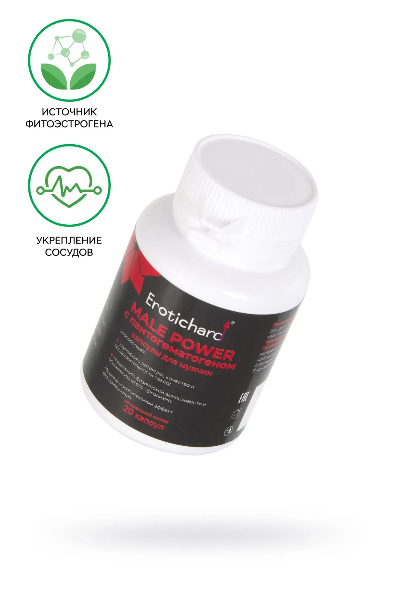 Биогенный комплекс растительных экстрактов Erotichard® male power в капсулах с пантогематогеном – это натуральный, негормональный продукт, направленный на нормализацию работы мужской репродуктивной системы.