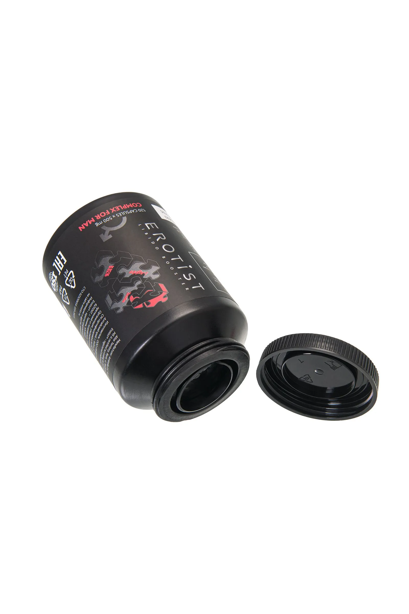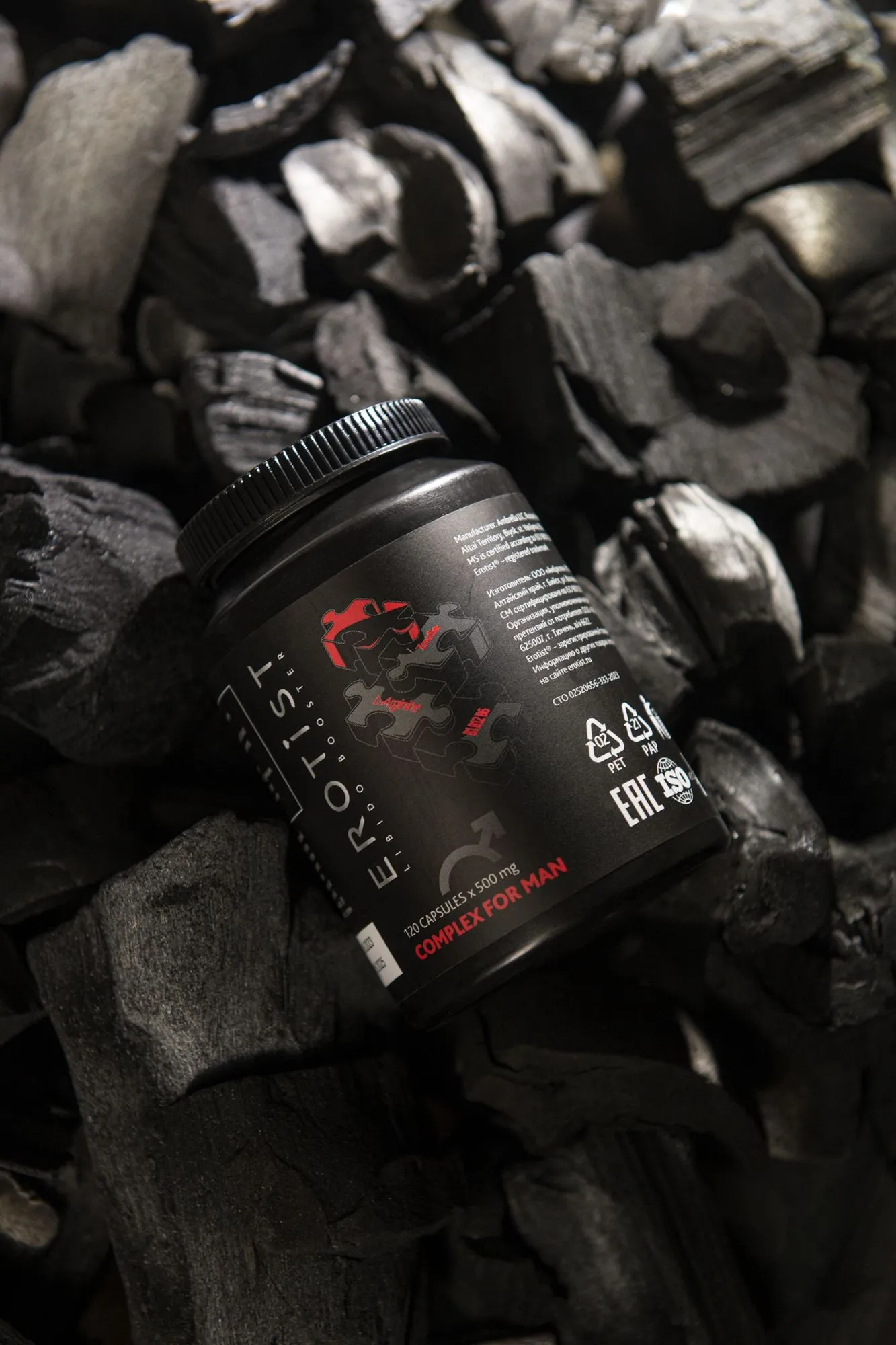 Сексуальная сила и выносливость – залог успешной интимной жизни и количества восхищенных женщин. Erotist Booster на страже твоего сексуального здоровья и долголетия. Пищевая добавка на основе растительных компонентов COMPLEX FOR MAN – это уникальное сочетание экстрактов 14 целебных трав и природных компонентов, совместная эффективность которых способствует повышению сексуального влечения и улучшению эректильной функции. Пищевая добавка обеспечивает поступление целого комплекса действующих веществ, запускает механизмы, направленные на повышение эрекции и усиление полового влечения, благоприятно воздействуя на выработку спермы и препятствуя преждевременной эякуляции, восстановлению мужской энергии, повышению потенции и продлению продолжительности полового акта. Активный комплекс пролонгированного действия основан на растительных компонентах. Благодаря сбалансированному составу обеспечивает натуральным зарядом бодрости и сил с самого утра и на весь день, повышает работоспособность и концентрацию, улучшает работу мозга, увеличивает естественный уровень сексуального желания и приводит в тонус мужскую силу. Активные компоненты не только воздействуют на проблему в комплексе, но и эффективны при многих нарушениях половой функции и сексуальных дисфункциях невротического характера, способствуя: повышению мужской потенции и сексуальной выносливости преодолению половой слабости наслаждению полнотой и яркостью сексуальных отношений увеличению либидо поддержанию отличного физического и умственного состояния. Комплекс рекомендуется использовать для восполнения дефицита минеральных компонентов и витаминов, развивающегося на фоне следующих состояний: при преждевременной эякуляции при бесплодии при половом инфантилизме при аденоме предстательной железы при простатите в острой и хронической форме при гормональных нарушениях (ослабление половой функции, нарушение эрекции, снижение либидо) при проблемах с мочеиспусканием (задержка мочеотделения и др.) при ослаблении иммунитета. Рекомендации по применению: при регулярной сексуальной активности взрослым мужчинам рекомендуется ежедневный прием по 1 капсуле 2 раза в день во время еды. Курс приема не менее 8-10 недель. Не содержит гормонов, не вызывает привыкания. Основные действующие компоненты: Аргинин (L-Arginine) – способствует увеличению в крови количества свободного NO. Окись азота выступает самым мощным природным вазодилататором. Благодаря этой функции удается улучшить микроциркуляцию в области органов малого таза, что ведет к усилению эрекции и продлению полового акта. Расширяет кровеносные сосуды полового члена и усиливает приток крови к органам малого таза. В результате этого у мужчины возникает твердая и длительная эрекция, увеличивается продолжительность полового акта. Помимо улучшения потенции, аргинин влияет на состав спермы и предотвращает мужское бесплодие. Йохимбе кора относится к афродизиакам, способным восстановить потенцию. Для возникновения эрекции необходимо расслабление гладкомышечного слоя пещеристых тел и артериол. Сексуальное возбуждение запускает каскад реакций, стимулирует нервные окончания и высвобождает оксид азота (NO). NO, в свою очередь, активирует ферментативные системы, увеличивающие уровень циклического гуанозинмонофосфата (цГМФ