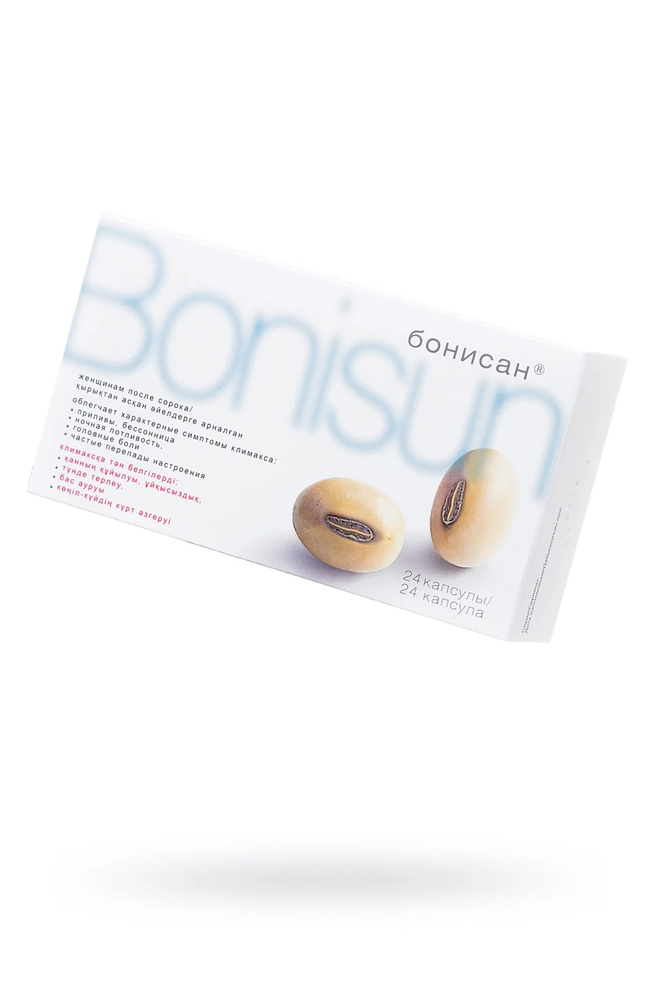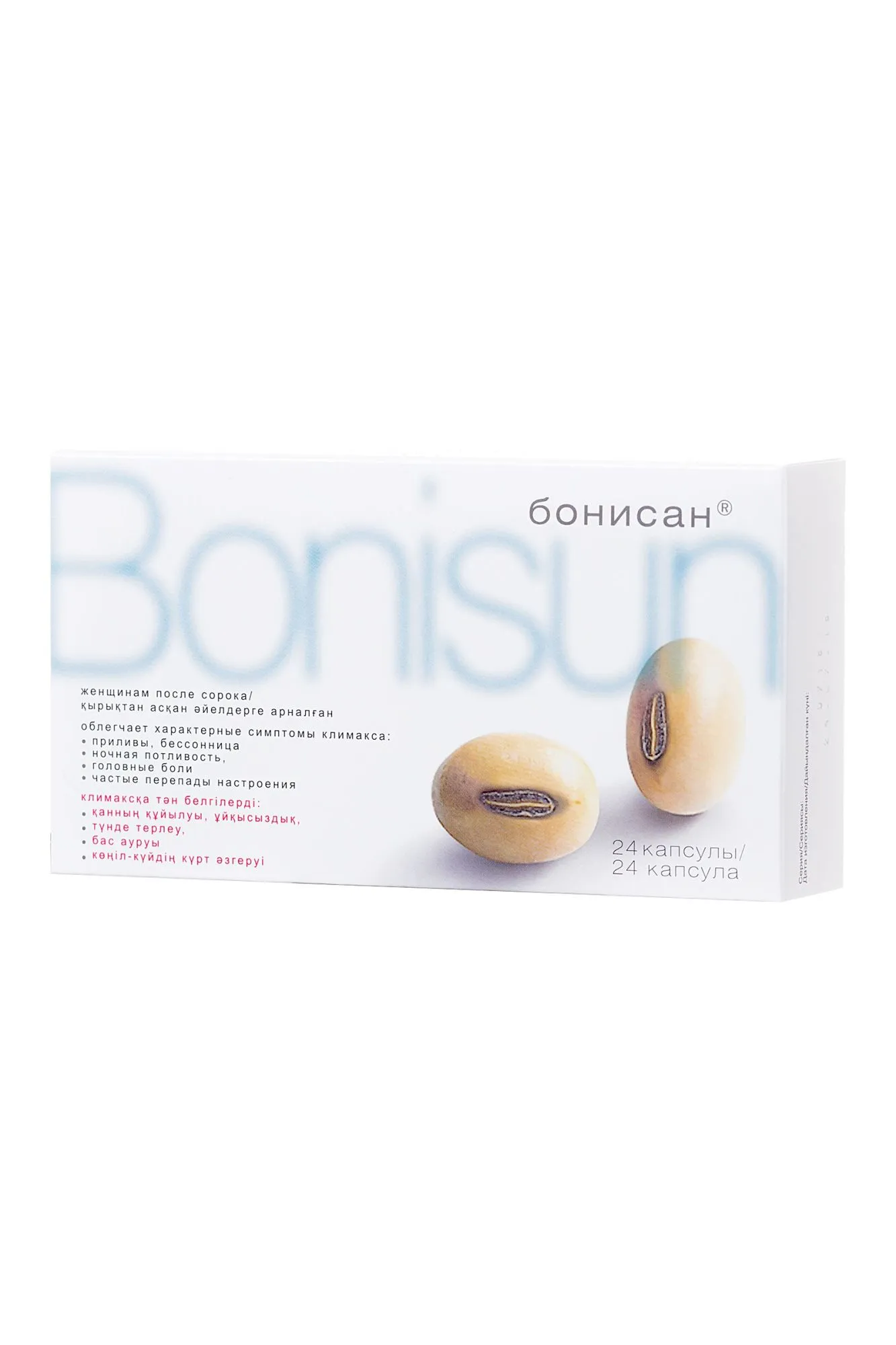 Бонисан (капсулы) – это негормональное средство, содержащее в своём составе изофлавоны сои, действие которых направлено на снижение риска раннего наступления климакса (при профилактическом приеме после 40 лет), и сглаживанию климактерических симптомов у женщин после 50-60 лет. Изофлавоны сои - это фитоэстрогены, природные соединения растительного происхождения. Регулируют уровень гормонов, облегчают характерные симптомы климакса, предупреждают возникновение остеопороза, укрепляют сердечно-сосудистую систему. Бонисан облегчает характерные симптомы климакса (приливы, бессонница, ночная потливость, головные боли, частые перепады настроения). Рекомендуется женщинам в качестве дополнительного источника изофлавонов. Совместное использование капсул и крем-геля любриканта “Бонисан®” на основе фитоэстрогенов Solgen повысит качество жизни женщин в пре- и постменопаузе, вернет уверенность в себе, избавит от неприятных спутников климакса. Рекомендации по применению: женщинам после 40 лет по 1 капсуле 1 раз во время еды. Продолжительность приема не менее 3 месяцев. Прием рекомендуется повторять 2-3 раза в год. Состав: Экстракт изофлавонов сои — 100 мг; вспомогательные компоненты: микрокристаллическая целлюлоза, стеарат кальция, желатин. Противопоказания: Индивидуальная непереносимость компонентов, беременность, кормление грудью. Перед применением рекомендуется проконсультироваться с врачом. Форма выпуска: 24 капсулы по 0,46 г БАД, НЕ ЯВЛЯЕТСЯ ЛЕКАРСТВОМ.