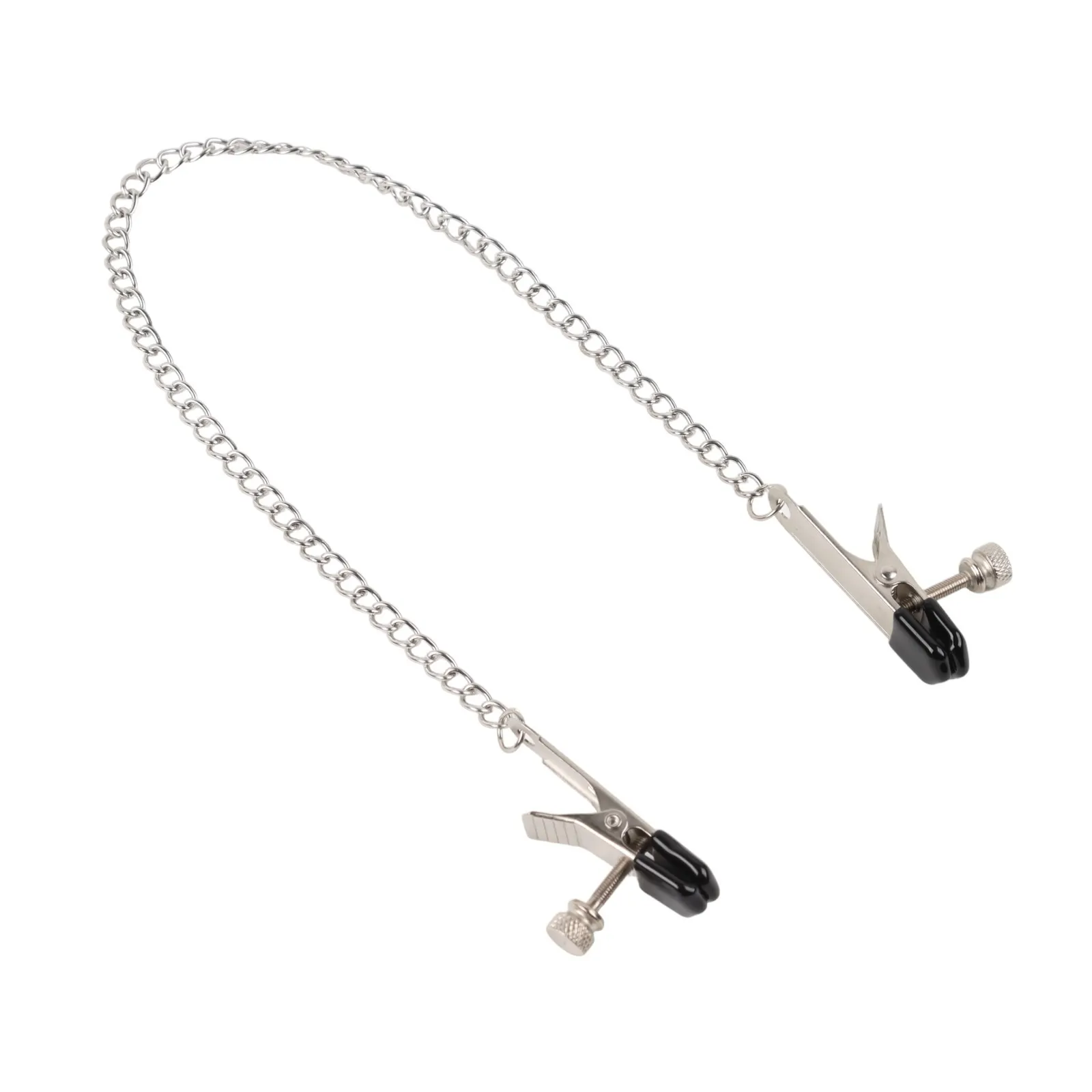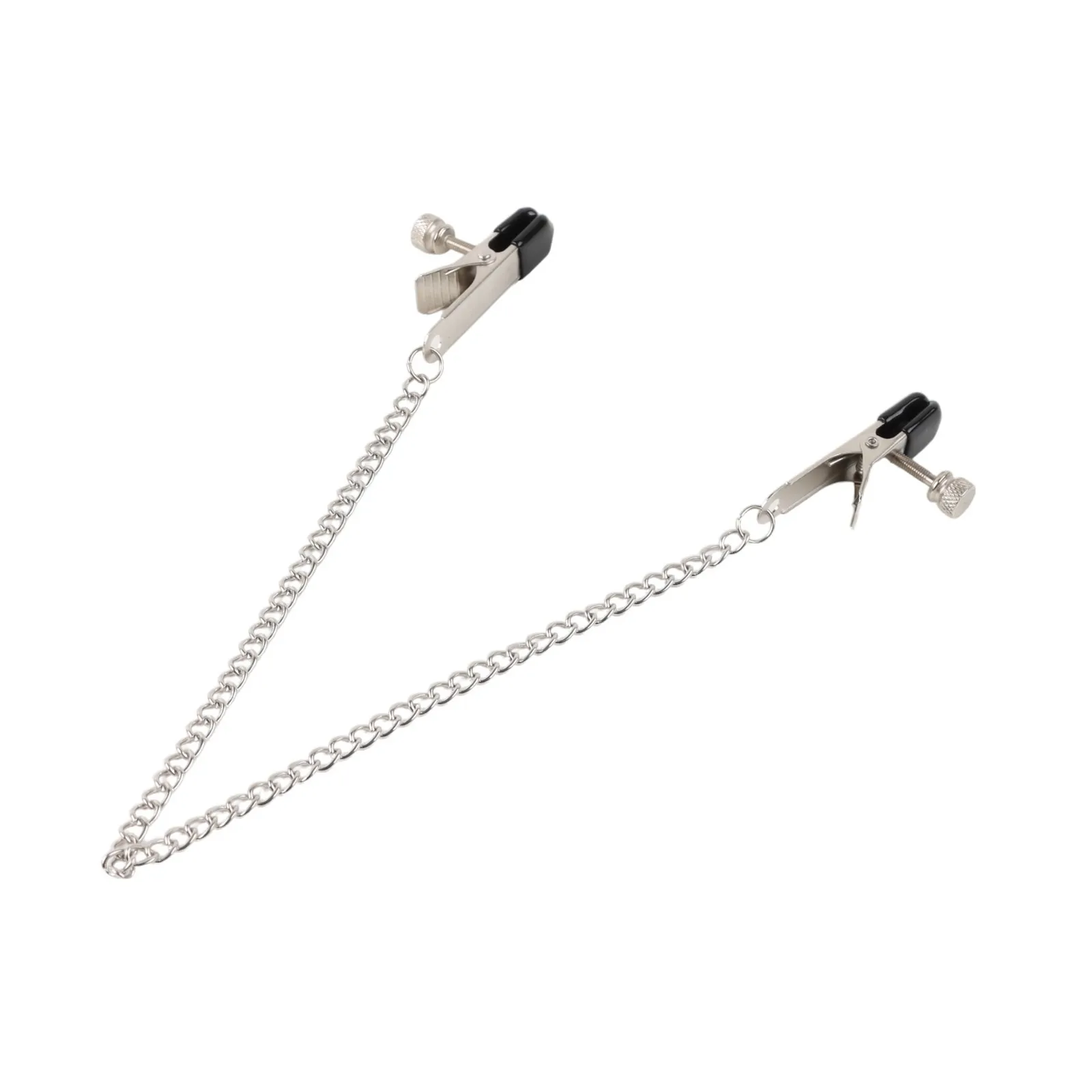 Зажимы для сосков и клитора изготовлены из алюминия, изделие имеет пластиковые наконечники. Длинная цепь позволяет одновременно использовать зажимы для сосков и клитора. Соединяющая цепочка является не только красивым дополнением, но и позволяет оттягивать и вращать соски для получения дополнительных приятных ощущений. Можно использовать как самостоятельный стимулятор, а также как дополнение к прелюдии и сексу.