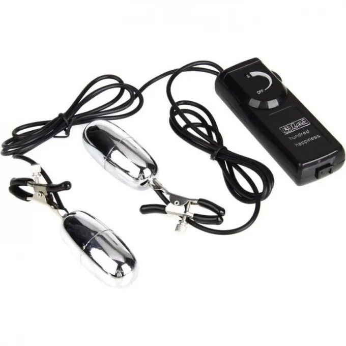 Зажимы также оснащены вибро-элементом, на них расположены мягкие накладки, которые препятствуют микро травмам сосков. Степень сжатия сосков регулируется при помощи винтиков.