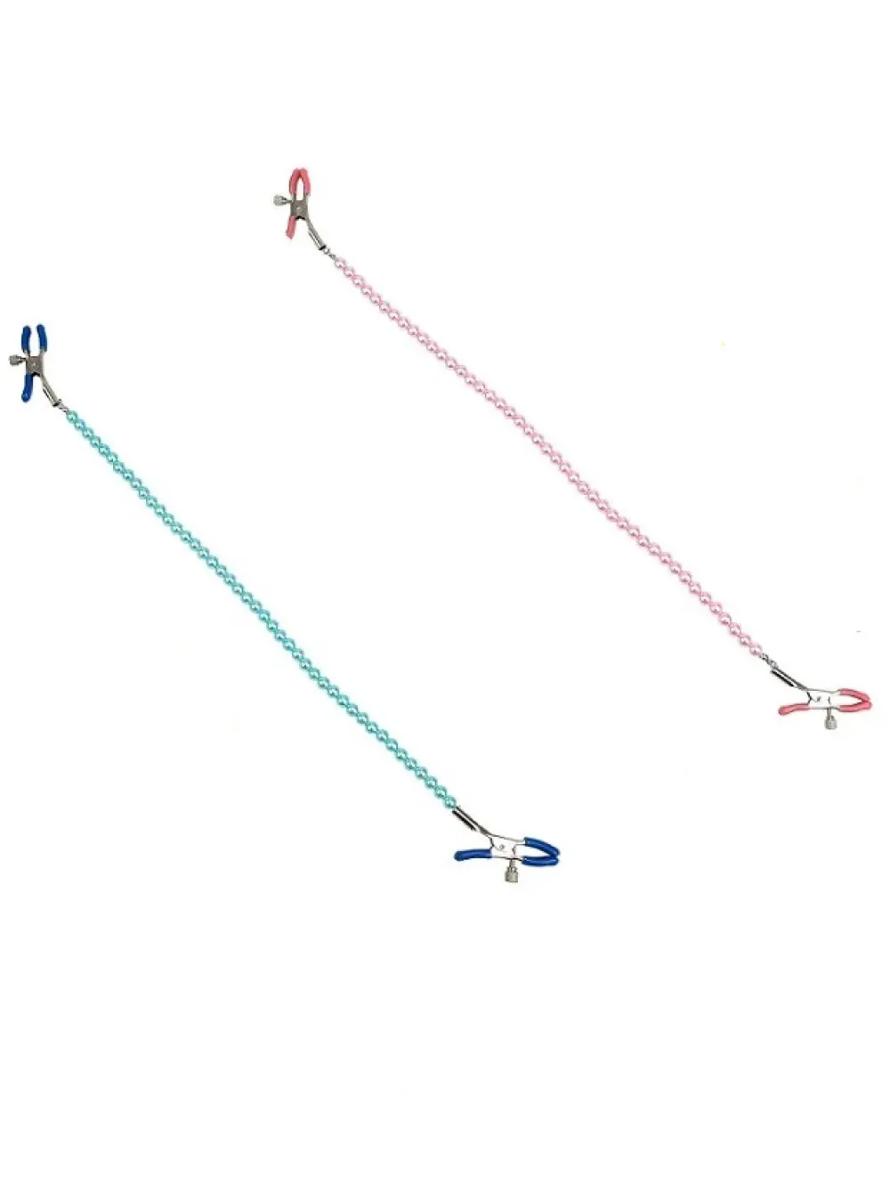 Зажимы на соски с цепочкой из бусин служат дополнительным стимулятором одной из самых чувствительных зон.Включают в себя 2 полностью регулируемых многофункциональных зажима. Имеют мягкие наконечники,между собой зажимы соединены цепью из бусин, которая одновременно служит своебразным утяжелителем для дополнительных ощущений.