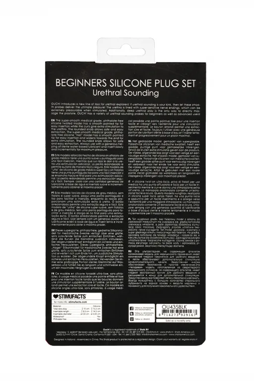 Beginners Silicone Plug Set– набор из двух стимуляторов уретры (мочеиспускательного канала). В комплект входят гладкая и состоящая из звеньев струны.