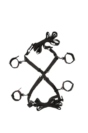 Фиксаторы и крепления на кровать Scandal Over The Bed Cross из чувственной премиум коллекции эротических аксессуаров Scandal. Воплощение фантазий в спальне. Манжеты и оковы на липучке с внутренней стороны отделаны приятным бархатистым материалом, исключающим нежелательный дискомфорт и раздражение кожи. С внешней стороны фиксаторы декорированы дизайнерским рисунком из блестящих красных нитей. Манжеты и оковы регулируются до 36,75 см. Прочные ремни регулируются до размера 456,25 см. Материал: Полиэстер, Акрил, Никель. Производитель: California Exotic Novelties.