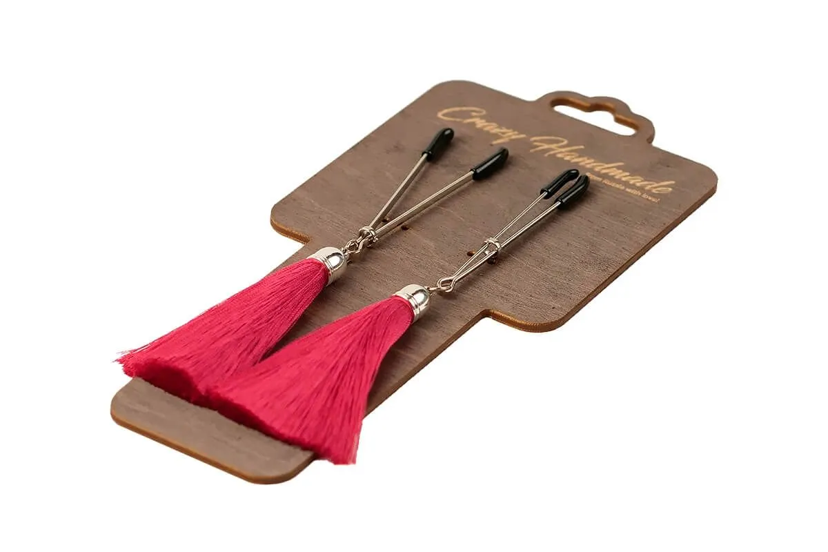 Зажимы-вилки на соски от бренда Pink Rabbit будут не только красивым интимным украшением, но и смогут сделать соски более чувствительными. Зажимы украшены красивыми шелковыми кисточками бордового цвета, которые будут соблазнительно и маняще колыхаться при каждом Вашем движении. Передвигая на зажимах колечко, Вы сможете отрегулировать необходимую степень сжатия. После использования зажимов соски станут гораздо чувствительнее и каждое прикосновение к ним будет более ощутимым. Кончики зажимов покрыты мягким материалом, поэтому они не травмируют нежную кожу.