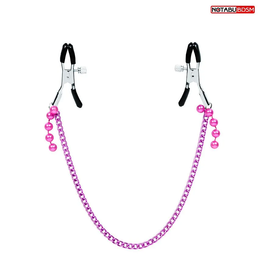 Изящные аксессуары для стимуляции сосков и усиления сексуального возбуждения. На концах зажимов имеются специальные эластичные накладки, препятствующие сильному сдавливанию и травмированию сосков.