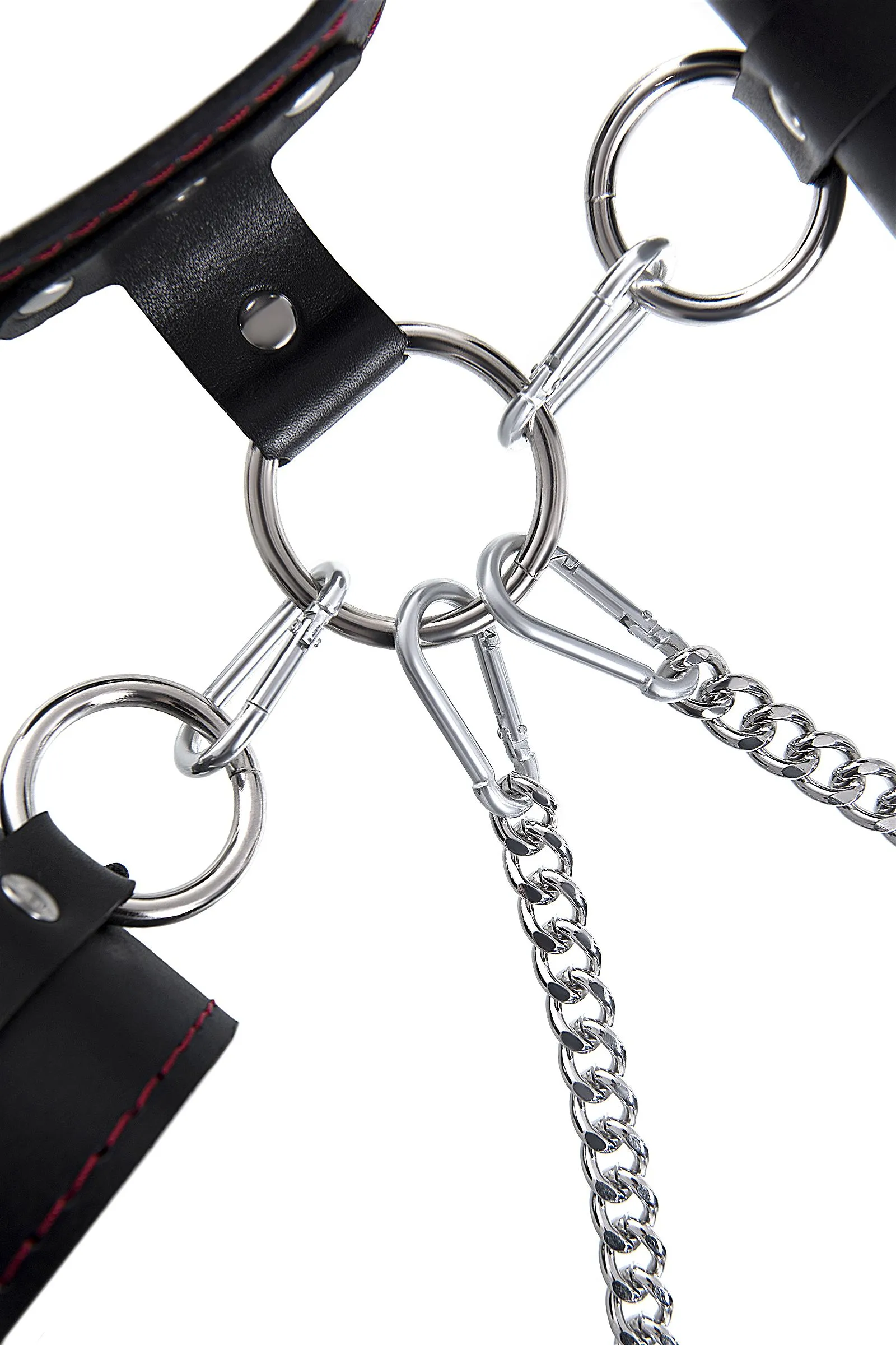 Готовы играть по-взрослому? С набором от Pecado BDSM воплощайте в жизнь смелые сексуальные фантазии, которые до этого момента были только мечтой. Хотите избавиться от искушения? Просто поддайтесь ему с Pecado BDSM! Бондажная система для фиксации рук и поддержки ног состоит из ошейника, пары фиксаторов для ног и пары наручников с контрастной строчкой красного цвета, всё это в фирменной деревянной коробке Pecado BDSM. Кожаный ошейник соединяется с наручниками с помощью кольца и металлических карабинов. Фиксаторы для ног крепятся к кольцу ошейника металлическими цепочками с карабином. Кольцо на ошейнике позволит присоединить и другие аксессуары при помощи карабинов и экспериментировать с позициями и ощущениями. С этим комплектом расширить возможности и способы фиксации проще простого! Варианты и комбинации ограничения свободы партнера зависят от вашей фантазии и желаний. Частичное обездвиживание и невозможность двигать руками дают вам полную власть над партнером – взрослые игры для взрослых. Pecado BDSM – российский бренд, использующий высококачественные материалы и надежную, проверенную временем фурнитуру. Все изделия изготавливаются вручную из натуральной кожи, безопасный и экологичный материал не оставляет повреждений на запястьях. Натуральная кожа, металлические крепления и ремешки дают уверенность в надежной фиксации, устойчивости к механическим нагрузкам и долговременном использовании. Ширина наручников - 6,5 см, длина наручников - 20 см