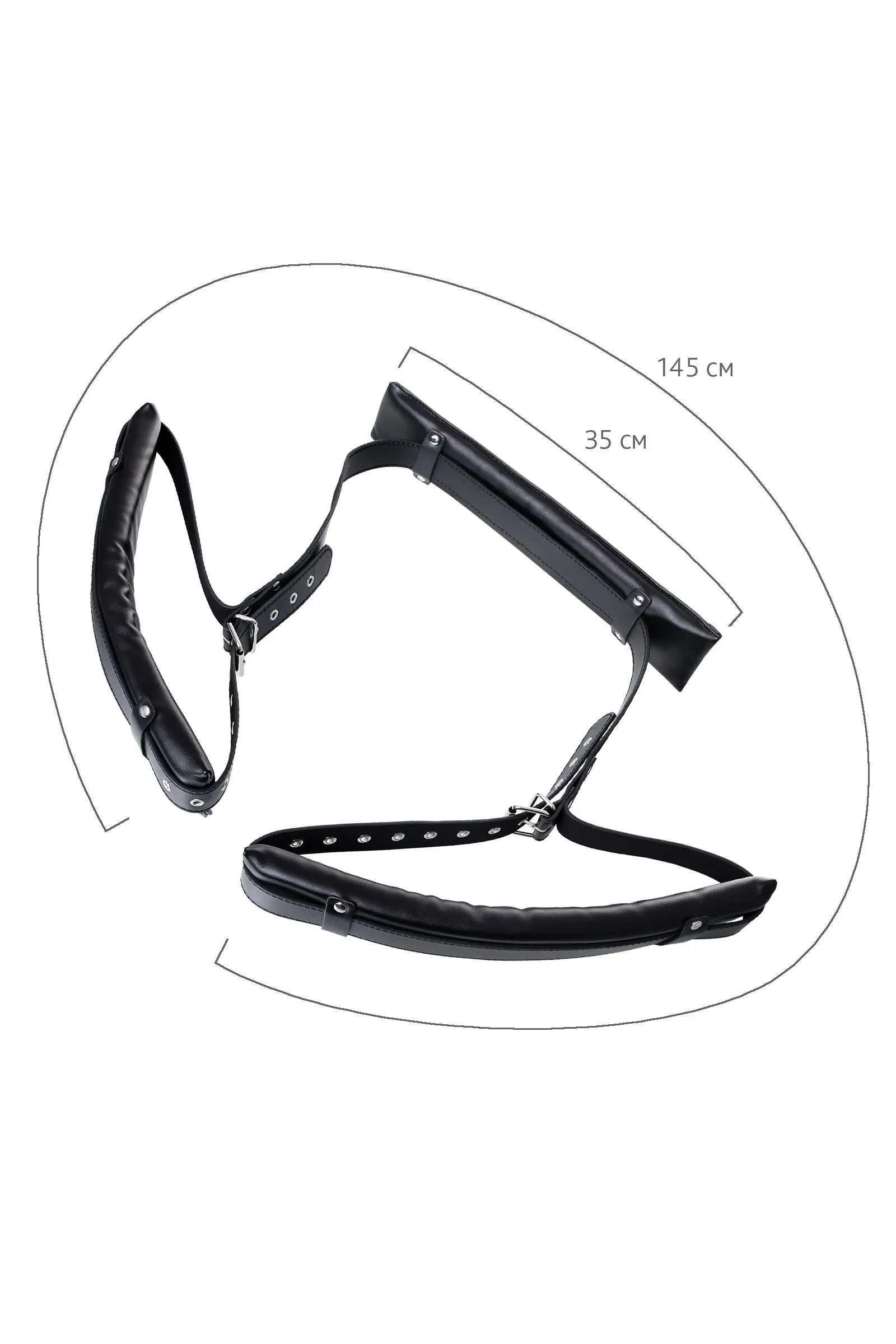 Чтобы экспериментировать и получать новые ощущения, необязательно быть БДСМ-практиком. Главное, что должно волновать вас — это взаимное удовольствие. Для этого вам пригодится мягкая стропа для фиксации. Больше не нужно тратить силы на удерживание ног в нужной позиции. Мягкие подушки поддерживают шею и бедра. Ремни регулируются металлической застежкой и настраиваются по вашему желанию, чтобы удерживать бедра в нужном положении. Кожа и металл — брутальное сочетание для вашего нового секс-девайса. Подчиняйтесь с комфортом, сосредотачиваясь на собственных ощущениях. Материал: PU кожа, пенка EVA Общая длина: 145 см Длина подушки: 35 см Ширина подушки: 6,5 см Ширина ремня: 3 см