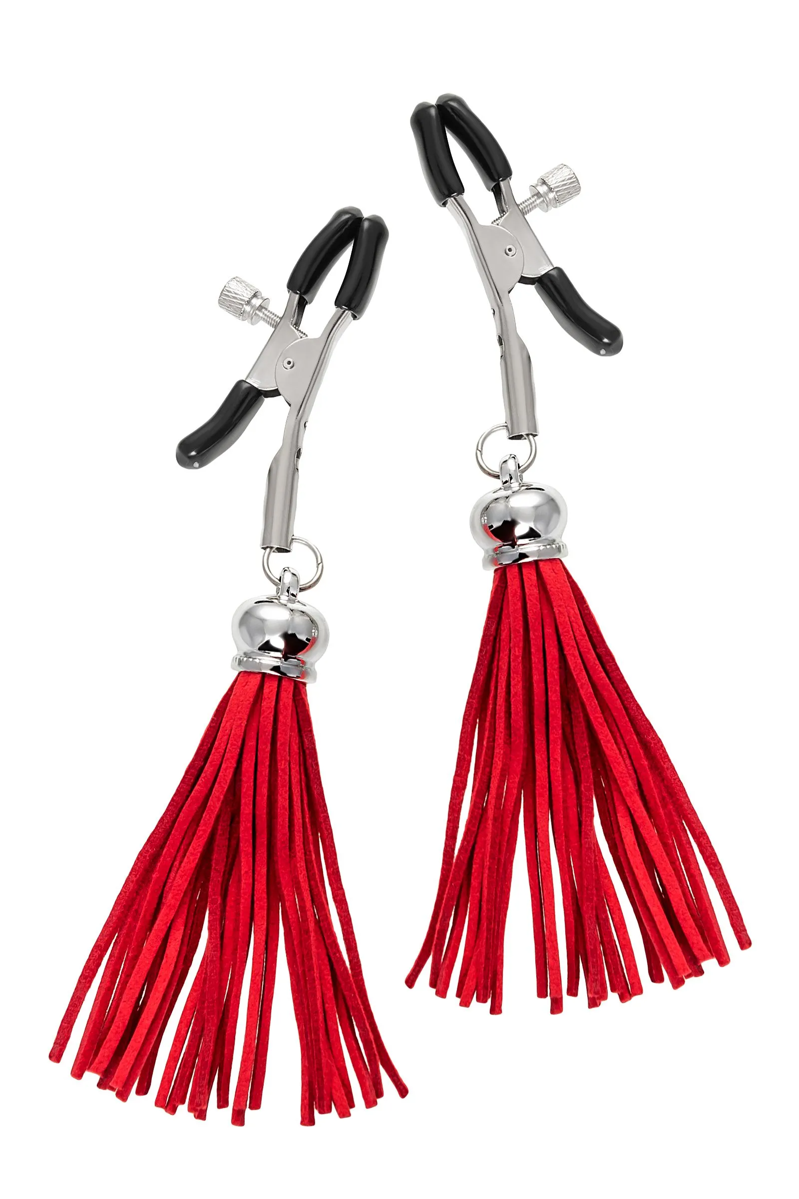 Хотите усилить ощущения от страстных игр с партнером? Увеличить степень возбуждения до невозможного можно с помощью зажимов-прищепок ручной работы от Рecado. Невероятно сексуальный аксессуар пробудит фантазию и повысит чувственность эротических зон. Мягкие резиновые накладки оберегают соски от повреждений. Металлический винт регулирует степень сжатия зажимов: от нежно-приятного до сильно-грубого. На концах черные резиновые наконечники, для безопасного воздействия на нежные участки тела. Компактный размер удобно вмещается как в женскую, так и в мужскую руку. Кисточки из натуральной замши не только визуально украшают эротический атрибут, но и еще утяжеляют его. Для самых смелых и искушенных любителей доминировать и подчиняться. ● Ручная работа. ● Надежная высококачественная фурнитура. ● 100% натуральная замша. ● Общая длина зажимов 14 см, длина кисточки 8,5 см. ● Не требуют специального ухода.