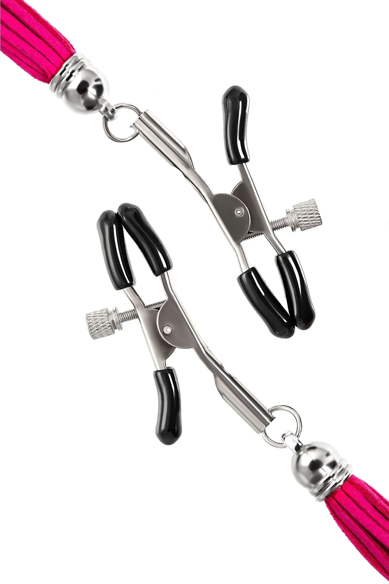 Хотите усилить ощущения от страстных игр с партнером? Увеличить степень возбуждения до невозможного можно с помощью зажимов-прищепок ручной работы от Рecado. Невероятно сексуальный аксессуар пробудит фантазию и повысит чувственность эротических зон. Мягкие резиновые накладки оберегают соски от повреждений. Металлический винт регулирует степень сжатия зажимов: от нежно-приятного до сильно-грубого. На концах черные резиновые наконечники, для безопасного воздействия на нежные участки тела. Компактный размер удобно вмещается как в женскую, так и в мужскую руку. Кисточки из натуральной замши не только визуально украшают эротический атрибут, но и еще утяжеляют его. Для самых смелых и искушенных любителей доминировать и подчиняться. ● Ручная работа. ● Надежная высококачественная фурнитура. ● 100% натуральная замша. ● Общая длина зажимов 14 см, длина кисточки 8,5 см. ● Не требуют специального ухода.