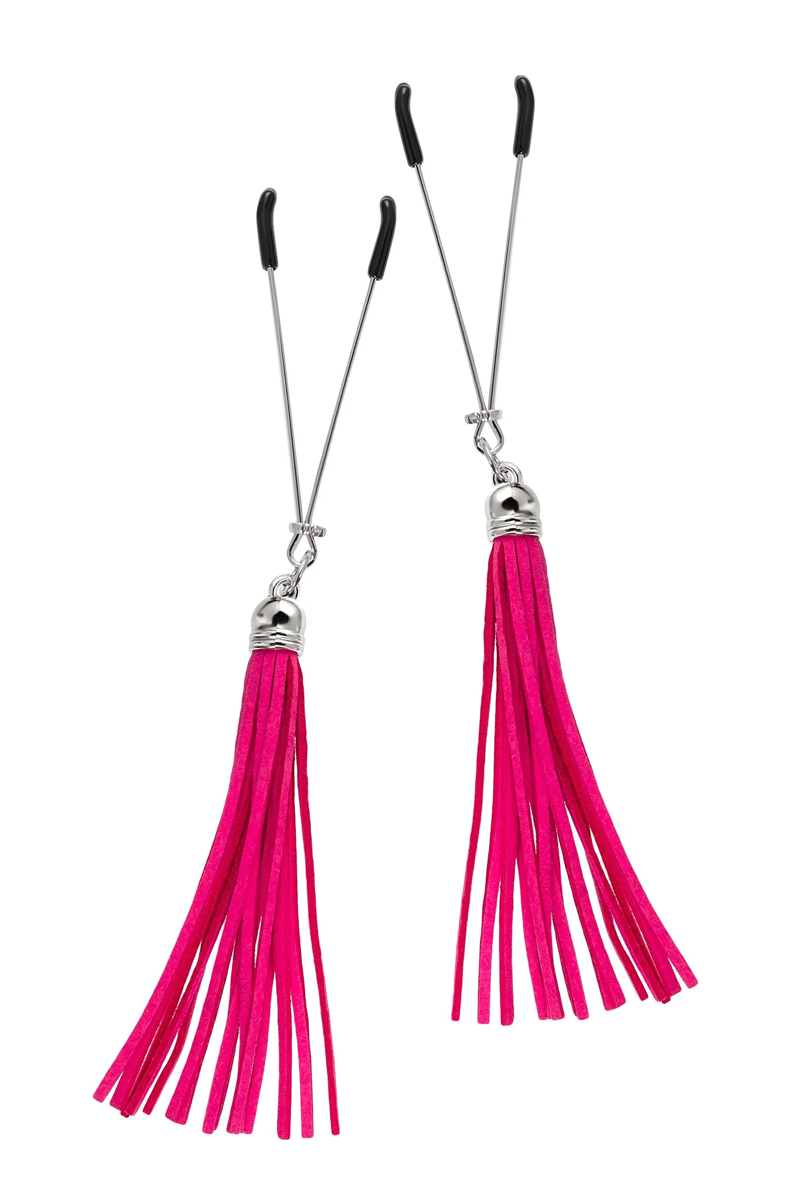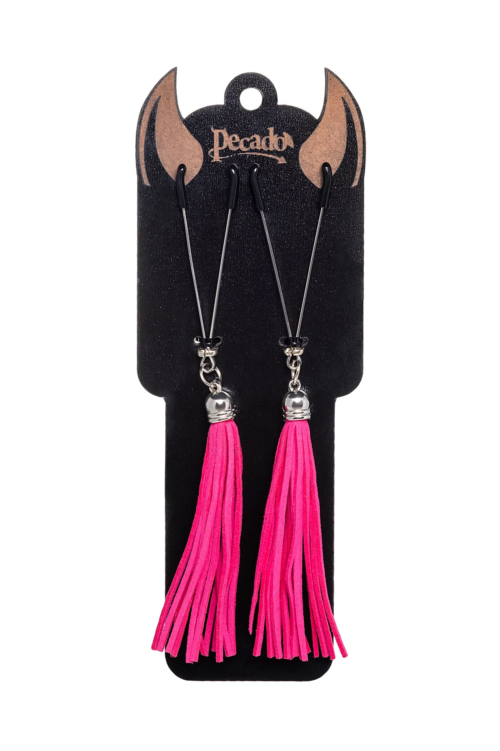 Попробуйте новые, дерзкие ощущения глубокого наслаждения! Зажимы-вилки от Pecado гарантируют смешение ярких чувств от тактильного контакта с нежной кожей сосков. Зажимы выполнены из высококачественных материалов. Металлическая часть компактная, приятная на ощупь. На концах черные резиновые наконечники, для безопасного воздействия на эрогенные зоны. Интенсивность сжатия аксессуара регулируется миниатюрными колечками. В зависимости от личных предпочтений и сценария игры, можно выбрать легкое пощипывание, или сильное сдавливание. Бахрома из натуральной замши, в насыщенном цвете фуксии, добавляет манящую красоту смелому атрибуту. При каждом соблазнительном покачивании груди, кисточки движутся в пикантном ритме. Также подходит для стимуляции и возбуждении в области половых губ и клитора. ● Ручная работа. ● Надежная высококачественная фурнитура. ● 100% натуральная замша. ● Не требуют специального ухода.