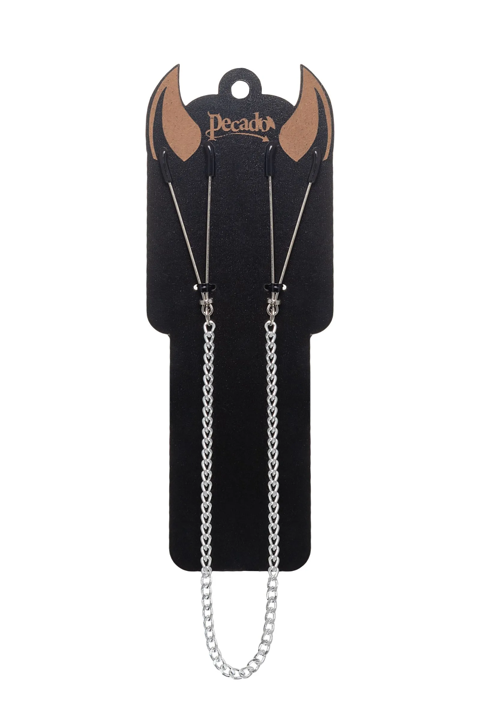 Зажимы-пилки на цепочке от Pecado только для тех, кто любит острые ощущения! Аксессуар из премиальных материалов подарит непередаваемую, взрывную гамму чувств. Соприкосновение холодного металла с нежной кожей сосков будоражит сознание. Основная, стальная часть атрибута компактная, тактильно приятная и ее удобно держать в руке. На концах черные резиновые наконечники, для безопасного воздействия на эрогенные зоны. Силу сжатия легко регулировать с помощью мини колец. В зависимости от личных предпочтений и сценария игры, можно выбрать легкое пощипывание, или сильное сдавливание. Подходят как женщинам, так и мужчинам. Зажимы соединены крепкой цепочкой. При каждом ритмичном покачивании груди, цепочка эротично движется и игриво звенит. А если за нее нежно потянуть, то можно увеличить бурлящий коктейль чувств от стимуляции. Попробуйте пикантный вид удовольствия с зажимом на цепочке от Pecado. Эффектно и возбуждающе! • Ручная работа. • Надежная высококачественная фурнитура. • Общая длина зажимов 7см, длина цепочки 31см. • Не требуют специального ухода.