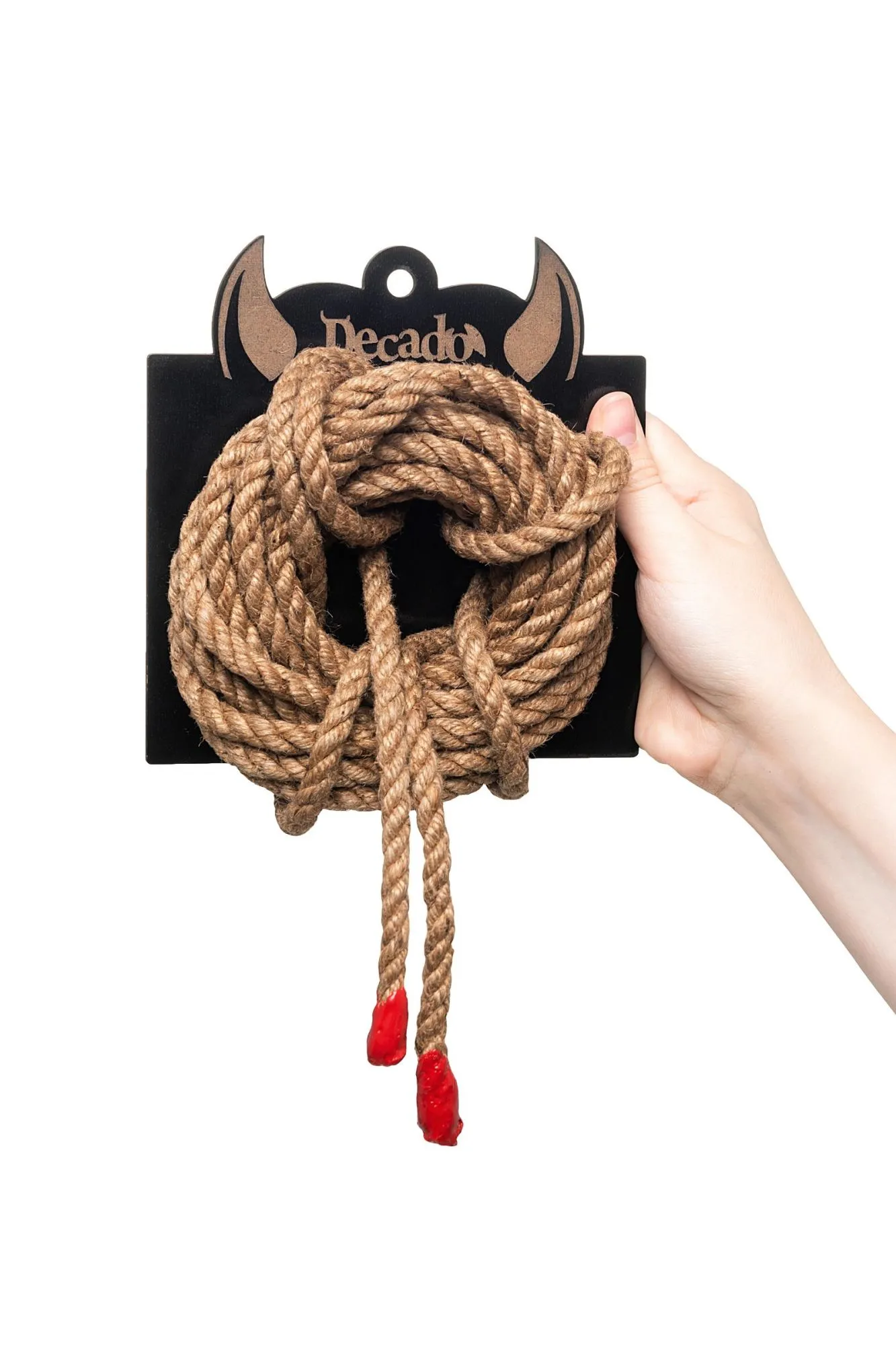 Джутовая веревка «SHIBARI» Pecado гарантированно вызовет мурашки по телу обоих партнеров. Этот классический предмет в БДСМ играх изготовлен по всем канонам искусства Шибари. Высококачественный материал натурального цвета практичен и не раздражает кожу. Веревка нежная, тактильно приятная, но в меру жесткая. Обработана, выварена вручную с применением гипоаллергенных материалов и готова к применению. Обладает теплым древесным ароматом, благодаря ароматизации афродизиаком. Концы веревки обработаны с помощью сургуча. Оптимальные размеры - диаметр 8 мм и длина 5 м в мотке хорошо подходит тем, кто только начинает знакомится с японской техникой связывания. А также опытным мастерам, истинным любителям неординарных ощущений! ▪️ Ручная работа. ▪️ Износостойкий, тактильно приятный материал. ▪️ Длина 5 м, диаметр 8мм.