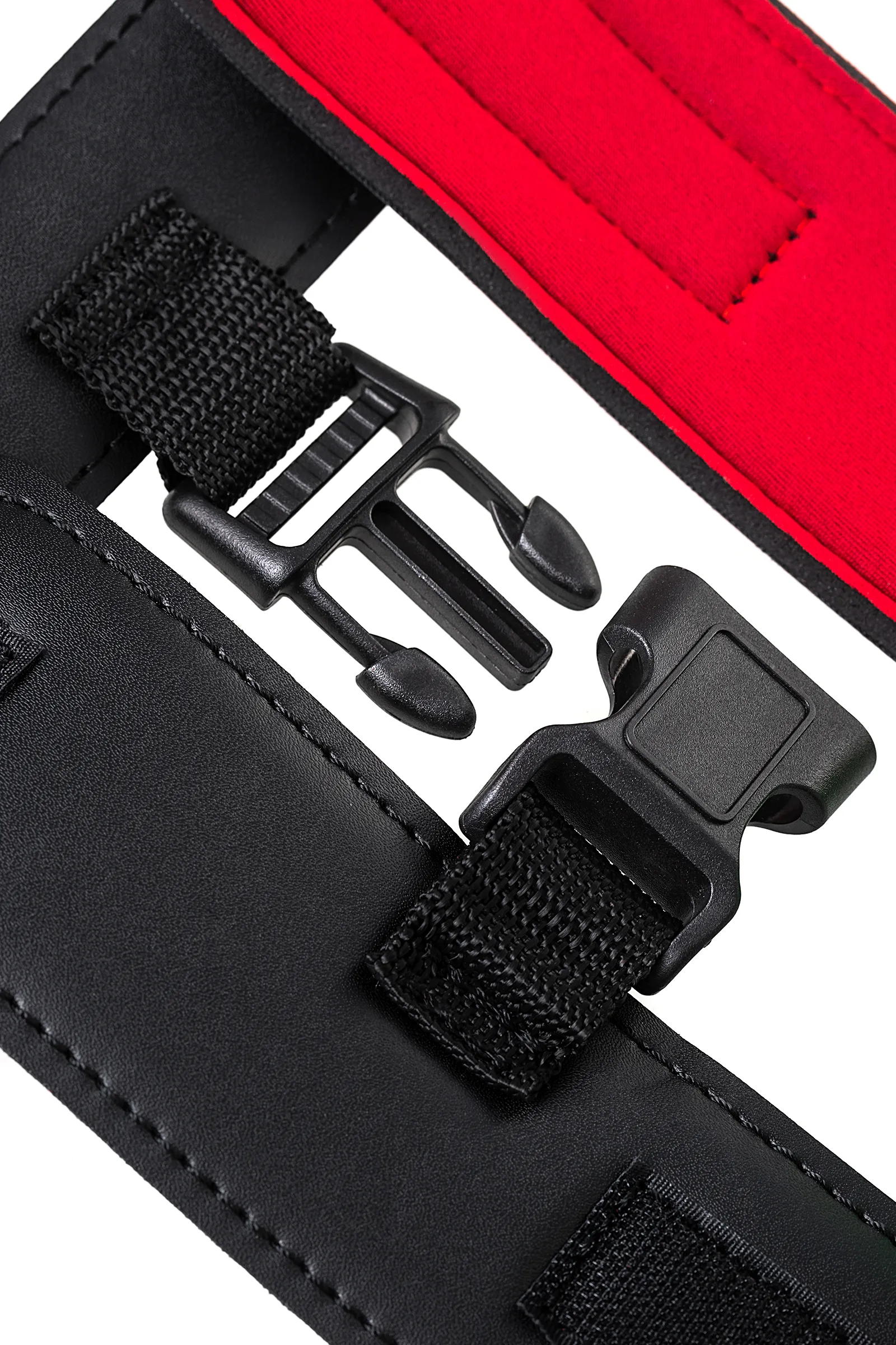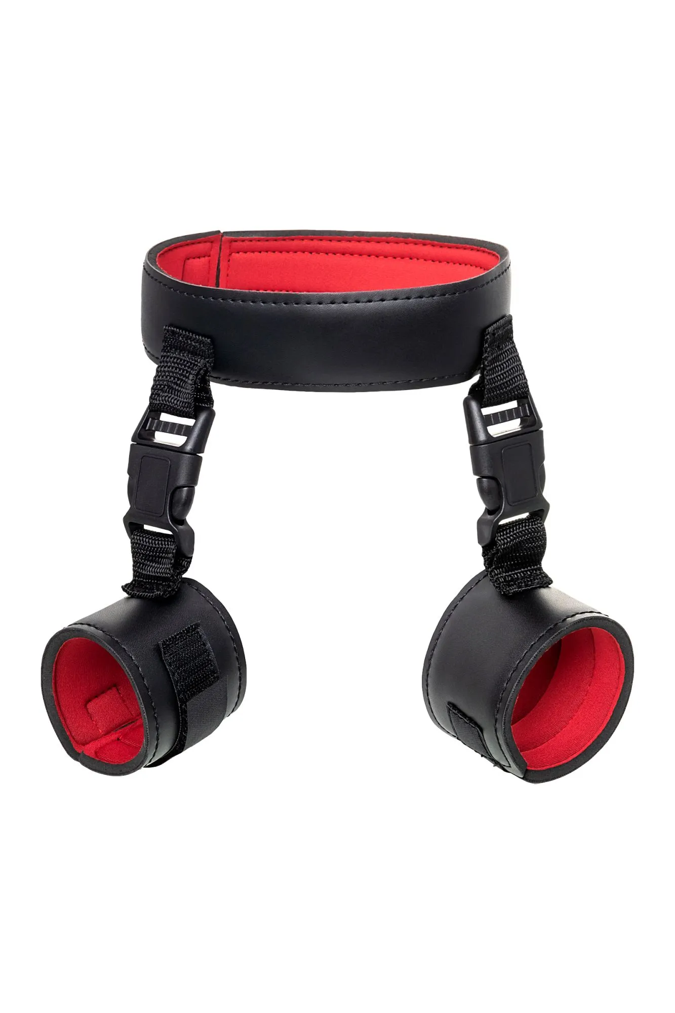 Ошейник с наручниками Современный комплект из мягкого материала комфортно обовьет шею и ограничит свободу рук. Застежка велкро (липучка) дает возможность использовать его партнером любого размера, так что меняйтесь ролями в зависимости от настроения! Пластиковые карабины на ошейнике и наручниках надежно фиксируют руки совсем рядом с шеей, не оставляя никакой свободы действий. С таким комплектом ограничить движения партнера легко в любом месте. Этот строгий аксессуар скрывает внутри страстный красный цвет так же, как вы скрываете свое увлечение БДСМ в обычной жизни. Управляйте друг другом, ограничивая свободу партнера, но не ограничивая своих сексуальных желаний. Длина ошейника 44 см Ширина ошейника 4,5 см Длина наручников 22 см Ширина наручников 6 см Застежка: липучка - велкро Материал: PVC В фотосессии на модели использованы пэстис Theatre 705006