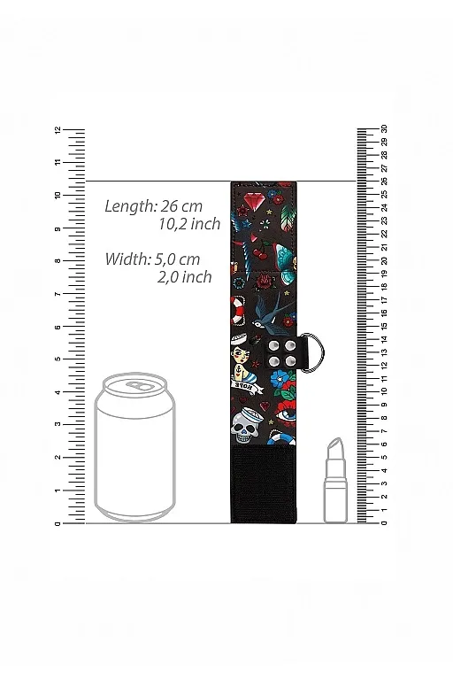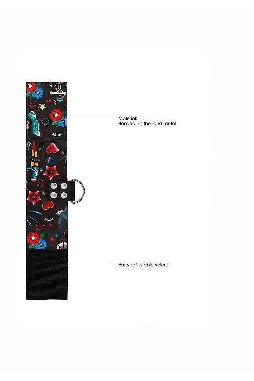 Наручники на цепочке Printed Hand Cuffs - специализированное приспособление для обездвиживания партнера при эротических ролевых играх и практиках БДСМ. Аксессуар состоит из двух широких полос, выполненных в необычном стиле, из мягкого материала, который не повредит нежную кожу. Благодаря удобным липучкам, можно легко подобрать оптимальный размер. Каждый манжет оснащен металлическим кольцом и универсальным карабином, с помощью которых они соединяются.
