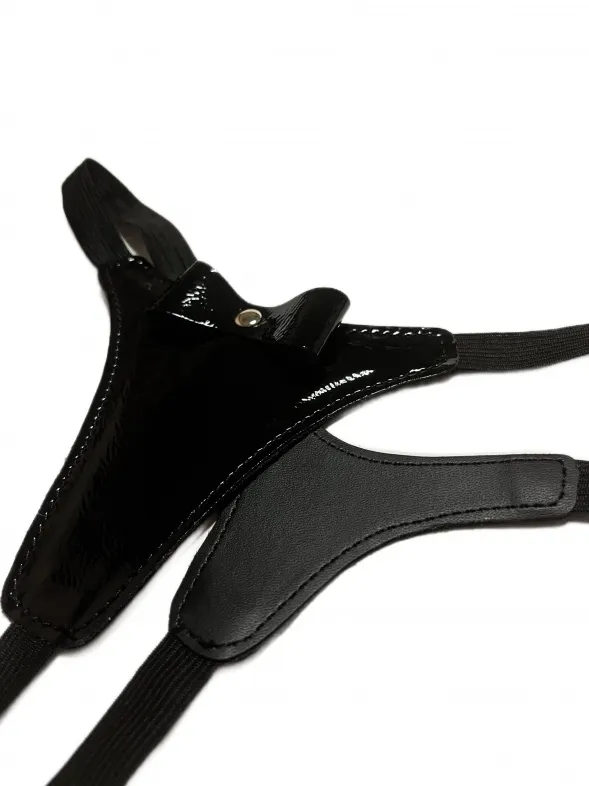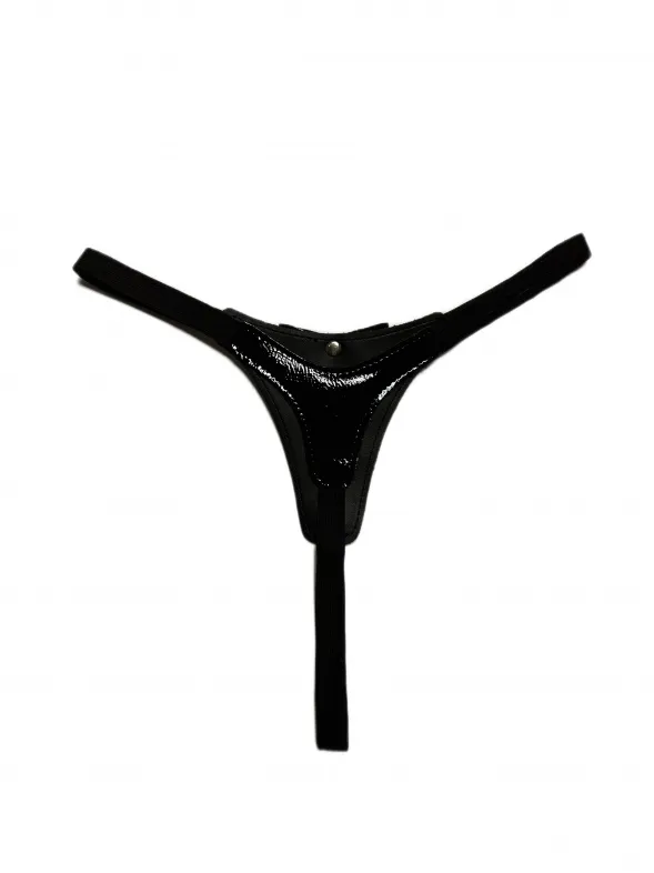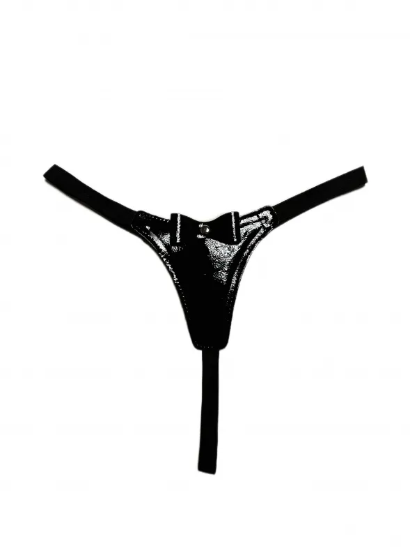 Сексуальные черные стринги, выполненные из эко-кожи. Декорированы спереди бантиком. Лицевая сторона выполнена из лакового материала, а внутренняя из матового. Благодаря эластичной резинке, отлично сядут по фигуре, подойдут на размеры 40-46. Очень красивая и удобная модель, которая поможет создать дерзкий сексуальный образ для вашей любовной игры! Материал: эко-кожа, эластичная резинка, металл Цвет: черный