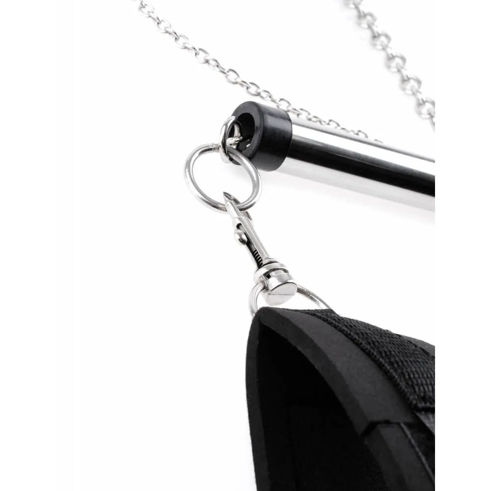 Extreme Spreader Set - это бондажный набор для жестких игр и для любителей БДСМ. Он включает в себя: шлем с шорами и замком, изготовленный из лайкры и спандекса, зажимами для сосков с цепью, виниловые поножи на металлической сцепке. Если Вы открыты для сексуальных экспериментов, проведите ролевую игру с наручниками. Устранение подвижности рук способствует обострению эрогенности других частей тела как за счет расслабленности и непредсказуемости ролевой игры, так и за счет невозможности отмахиваться и отбиваться. Этот набор с металлическими цепями позволит Вам надежно зафиксировать Вашего партнера.