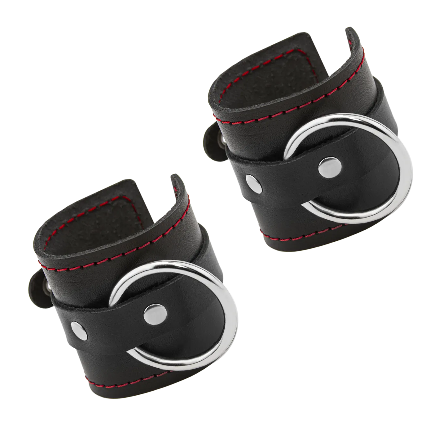 На каждом конце креста есть карабины, при помощи которых Вы сможете присоединить к ним наручники и поножи или же другие аксессуары. Однослойные наручники и оковы выполнены из натуральной кожи черного цвета и декорированы контрастной строчкой.