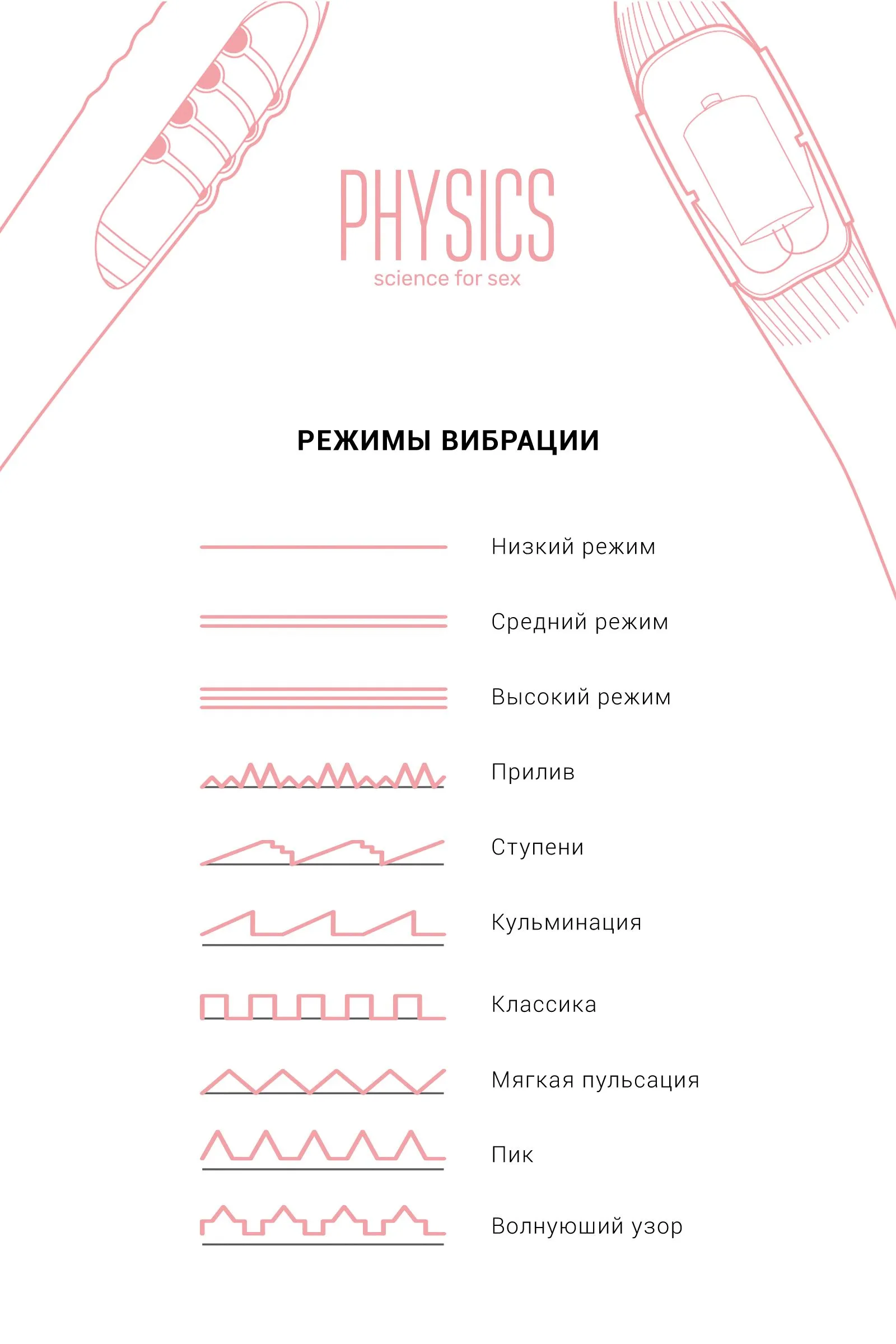 Новый бренд PHYSICS — наука для удовольствий! Игрушки разработаны с учётом законов физики и анатомии. Каждая игрушка дополнена функциями, воздействующими на организм девушки таким образом, чтобы доставить ей вспышку оргазма, сравнимую со вспышкой молнии. Вибратор с электростимуляцией PHYSICS GALVANI VIBE. 10 режимов электростимуляции 10 режимов вибрации Утончённый и элегантный дизайн разработан с учётом женской анатомии. Мягкий и нежный силикон приятен к телу, а также прост в уходе. Вибратор генерирует разряды микротока, которые ощущаются как нежное покалывание. Электростимуляция сокращает интимные мышцы, таким образом повышая их тонус. Оргазм с вибраторами Physics глубокий и насыщенный, благодаря притоку крови и кислорода к органам тазового дна.