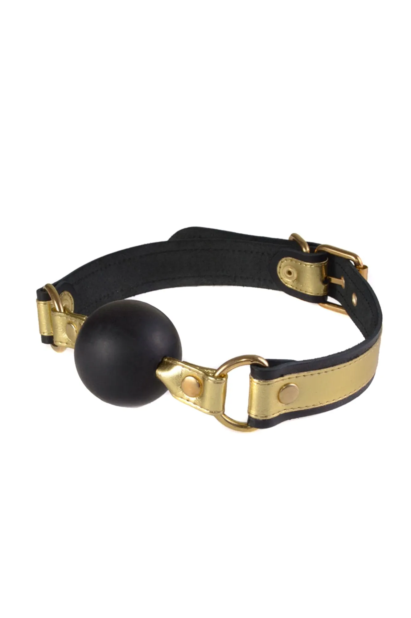 Хотите насладиться во время секса возбуждающими стонами в безмолвной тишине? Предложите секс-партнёру замечательный кляп от Ситабелла! Стоит только применить кляп, как сексуальное общение между партнёрами начинает происходить совершенно по-другому, глазами, жестами, эмоциями, это привносит в половые отношения необычайную новизну. Кляп состоит из шара сферы средних размеров и ремешков, при помощи которых можно зафиксировать изделие или отрегулировать размер. Упругий кляп-шар изготовлен из современного материала ТЭП, который соответствует нормам безопасности. Ремешки изделия выполнены из высококачественной натуральной кожи черного цвета и украшены вставками под золото. Вся металлическая фурнитура имеет никелевое покрытие. Общая длина кляпа около 57 см. Ширина ремешков 2,5 см. Диаметр шара 4,5 см.