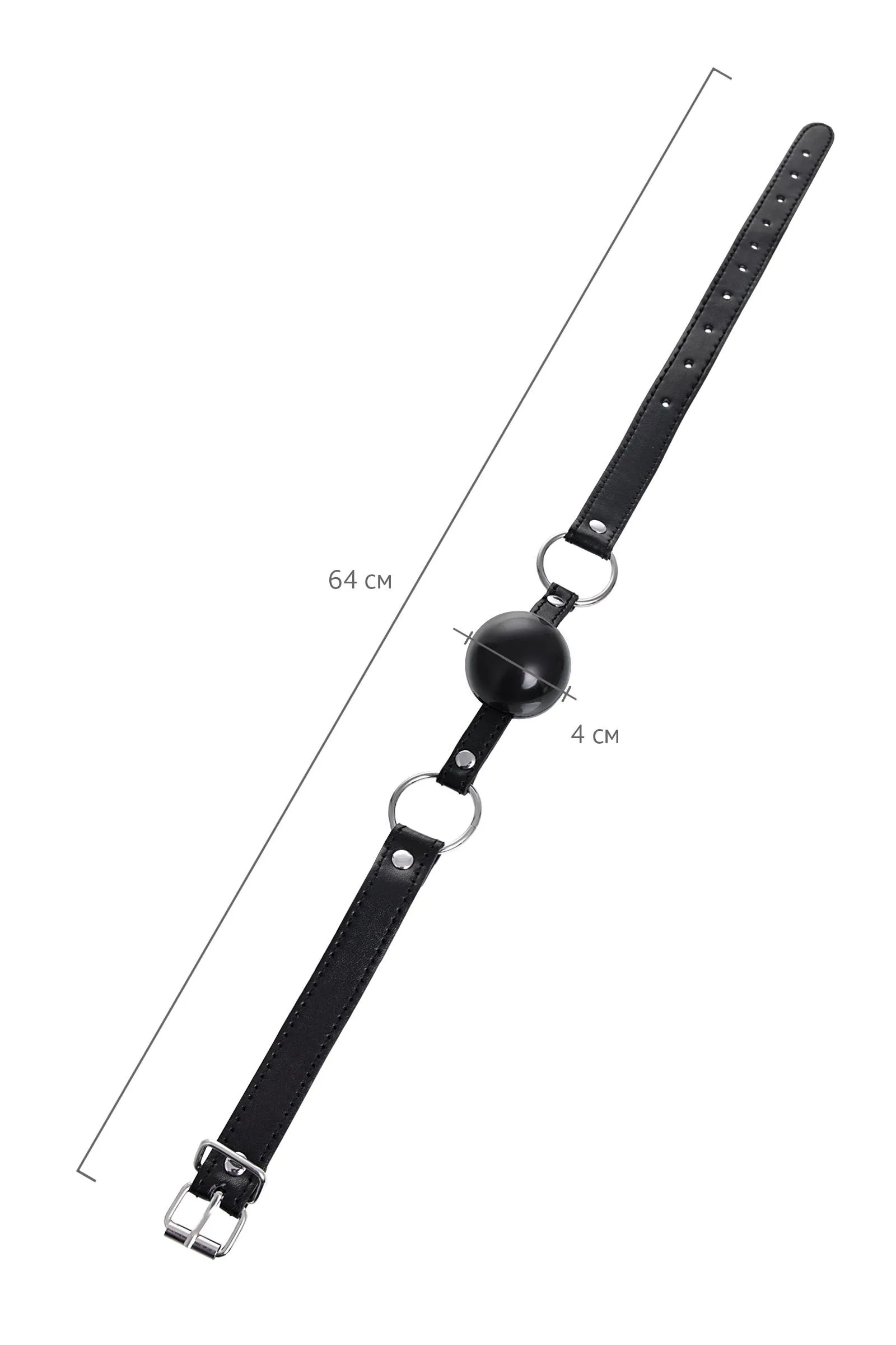 Искусство красноречивого взгляда – все что остается, ведь невозможно произнести ни слова в этом кляпе – только слушать и подчиняться. На первый взгляд кажется, что мягкость материала кляпа сделает игру в подчинение более комфортной, однако воздухонепроницаемость добавит напряжения в ваши отношения. Классическое сочетание черного цвета и металлической фурнитуры делает образ сексуальным и загадочным. Ремешок фиксируется на голове металлической пряжкой и подходит для любого размера головы. Дополните брутальный образ аксессуарами той же расцветки, чтобы погрузиться в атмосферу классической БДСМ-игры. Материал: PU кожа, TPR Цвет: черный Общая длина: 64 см Диаметр кляпа: 4 см