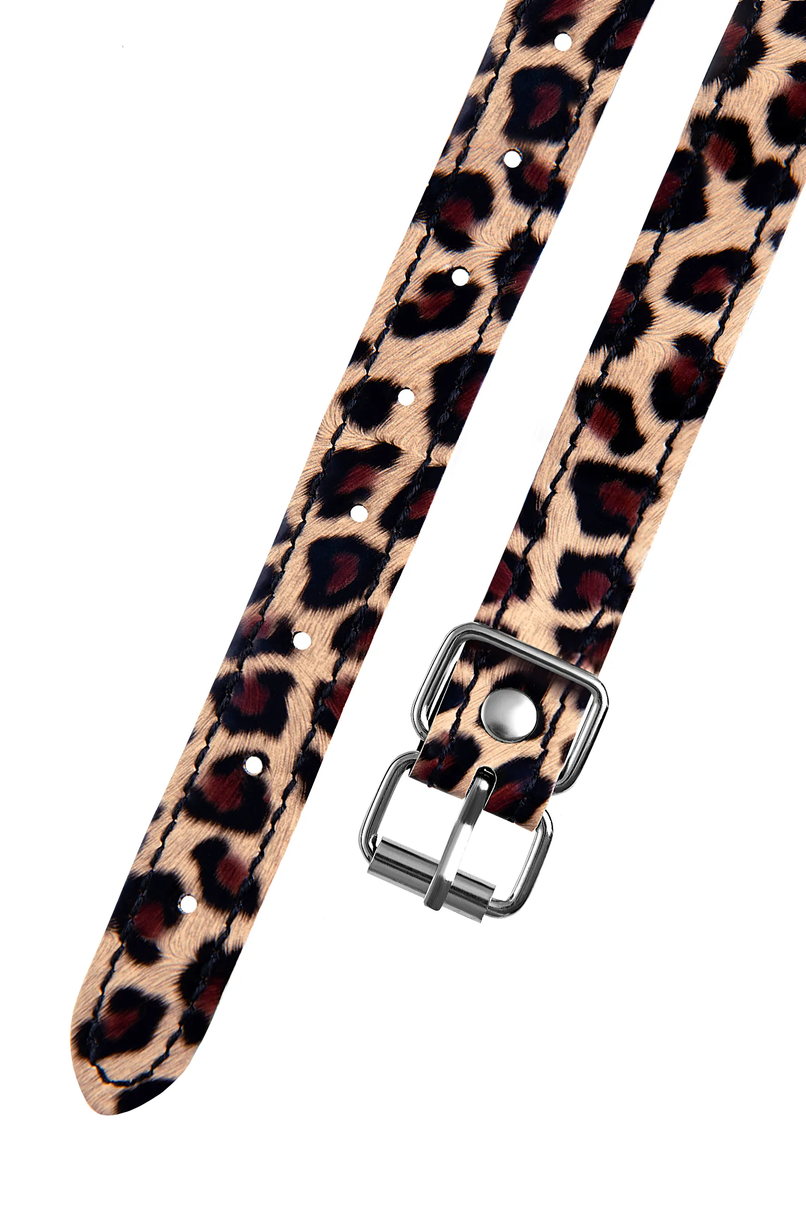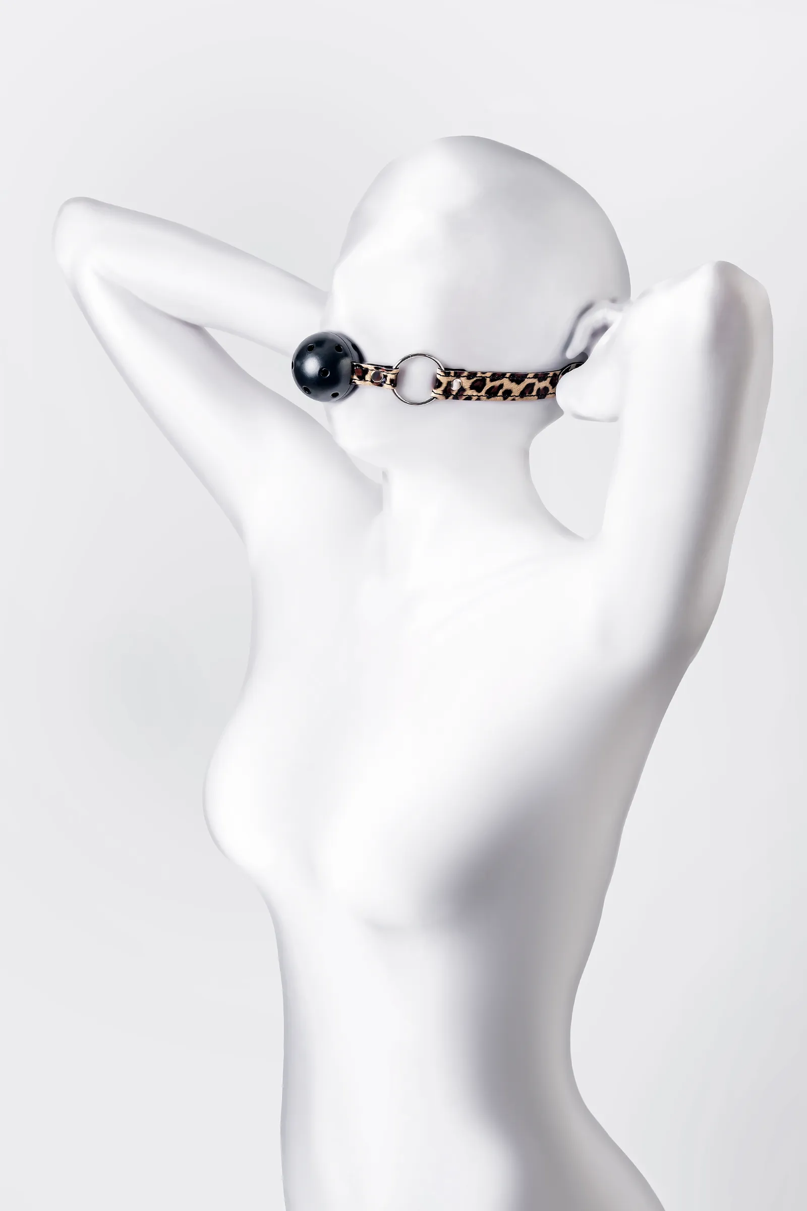 Искусство красноречивого взгляда – все что остается, ведь невозможно произнести ни слова в этом кляпе – только слушать и подчиняться. Можно скрежетать зубами по пластику, но вдруг Доминант рассердится и накажет еще сильнее? Специальные отверстия для воздуха делают ношение кляпа безопасным и комфортным. Удачное сочетание леопардовой расцветки и металлической фурнитуры делает образ сексуальным и загадочным, добавляя в образ элемент хищника. Ремешок фиксируется на голове металлической пряжкой и подходит для любого размера головы. Игра в послушную зверюшку или непокорного хищника…. Уже представили? Дополните образ аксессуарами той же расцветки и наслаждайтесь обществом друг друга. Материал: PU кожа, пластик Цвет: леопардовый, черный Общая длина: 64 см Диаметр кляпа: 4,5 см