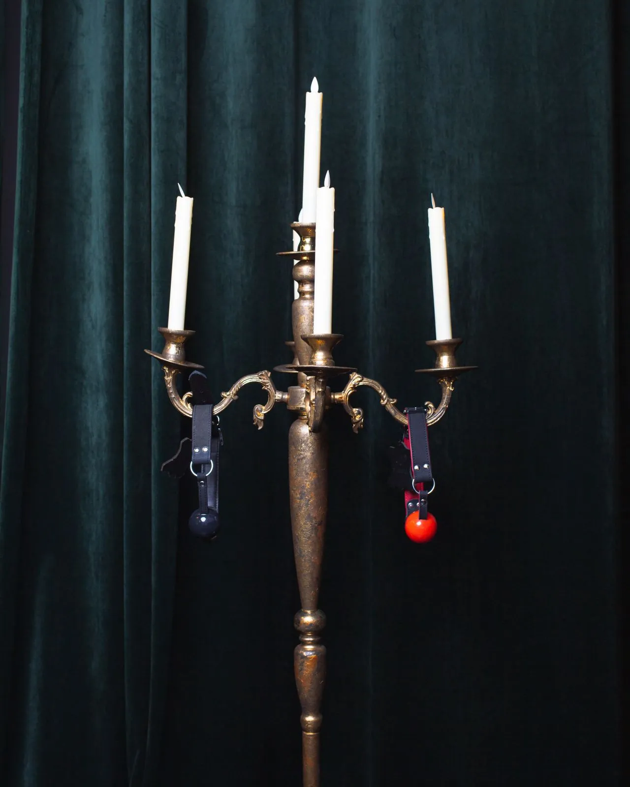 Шарик помещается в рот и фиксируется ремешками с классической пряжкой.