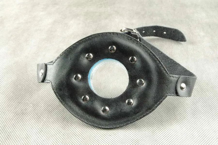 Расширитель для рта 10812 изготовлен из качественной кожи чёрного цвета. Фетиш аксессуар выполнен в эллипсовидной форме, а по его центру расположен цилиндр, диаметр которого составляет 4,5 сантиметра. Вокруг цилиндра на БДСМ атрибуте располагаются фиксирующие кольца с диаметром 5 сантиметров. Для фиксации БДСМ аксессуара на голове раба предусмотрен удобный регулируемый ремешок с металлической пряжкой, который также выполнен из натуральной кожи.