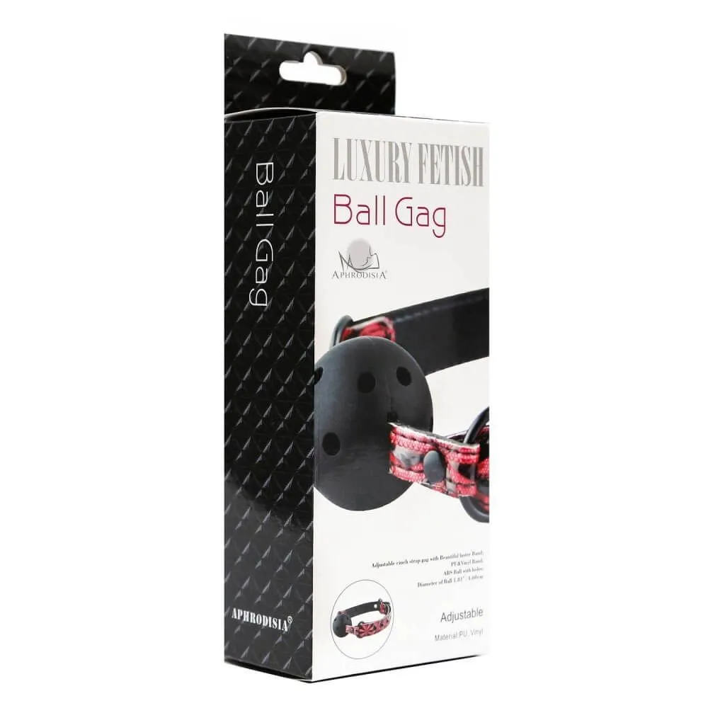 Aphrodisia Ball Gag - это пластиковый кляп черного цвета. Надевается Ball Gag с помощью винилового ремешка, который можно отрегулировать под нужный размер. Ремешок выполнен с узорчатой текстурой красного цвета. С внутренней стороны у аксессуара есть специальная подкладка из мягкого неопрена для комфортного использования.