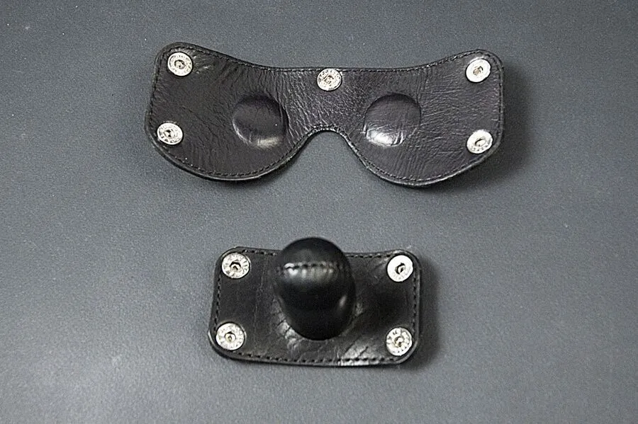 Шлем «Слеп, нем и фиксирован» от бренда Beastly представляет собой аксессуар, благодаря которому Вы сможете заставить замолчать своего партнера и лишить его возможности видеть. У него есть отстегивающиеся шоры и кляп, которые в любой момент можно снять или надеть обратно в зависимости от сценария игры. По бокам и на макушке расположены три вращающихся полукольца для присоединения различных бондажных аксессуаров. Шлем сплошной и сделан из натуральной кожи черного цвета с использованием металлической фурнитуры. Шнуровка на затылке позволит подогнать его под нужный размер.