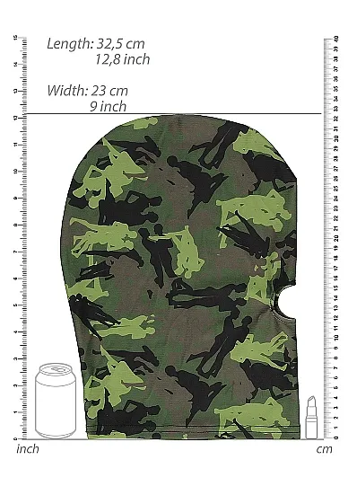 Маска-шлем (депривационная маска) Army Theme - аксессуар для ролевых игр, в том числе и в стиле БДСМ. Выполненная из легкого и эластичного материала, она плотно облегает голову, но при этом прекрасно пропускает воздух и обеспечивает комфорт даже во время длительного использования. Помимо этого, она не полностью блокирует свет, позволяя, хоть и не четко, но видеть происходящее.