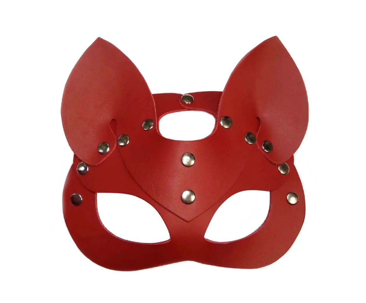 Маска выполнена из натуральной кожи красного цвета. Она регулируется по размеру при помощи ремешка с пряжкой, поэтому носить ее будет комфортно.