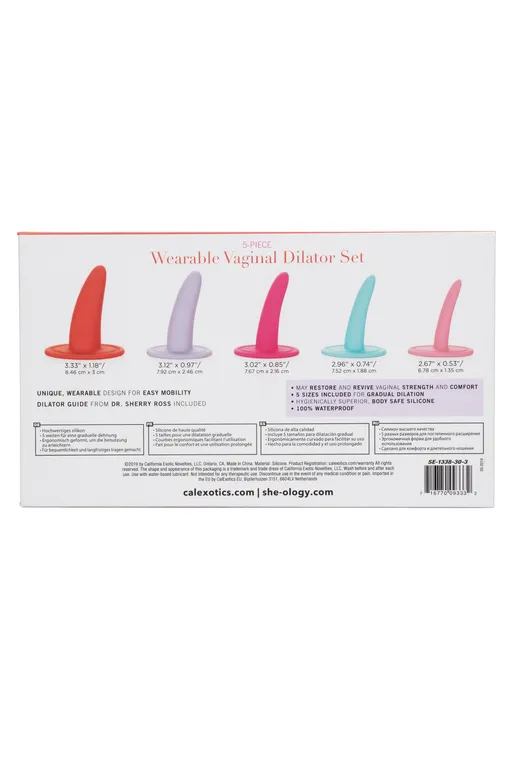 She-ology – это набор из пяти расширителей разных размеров для подготовки к осуществлению введения мужского полового члена во влагалище, либо анус, без боли и чувства дискомфорта. Рекомендованы доктором Шерри А. Росс – доцентом кафедры урологии, а также членом американской ассоциации урологов.