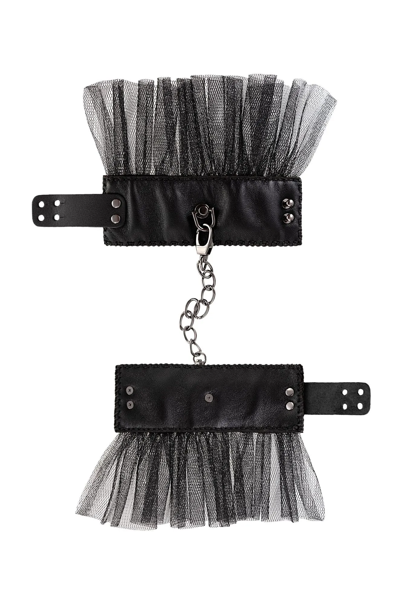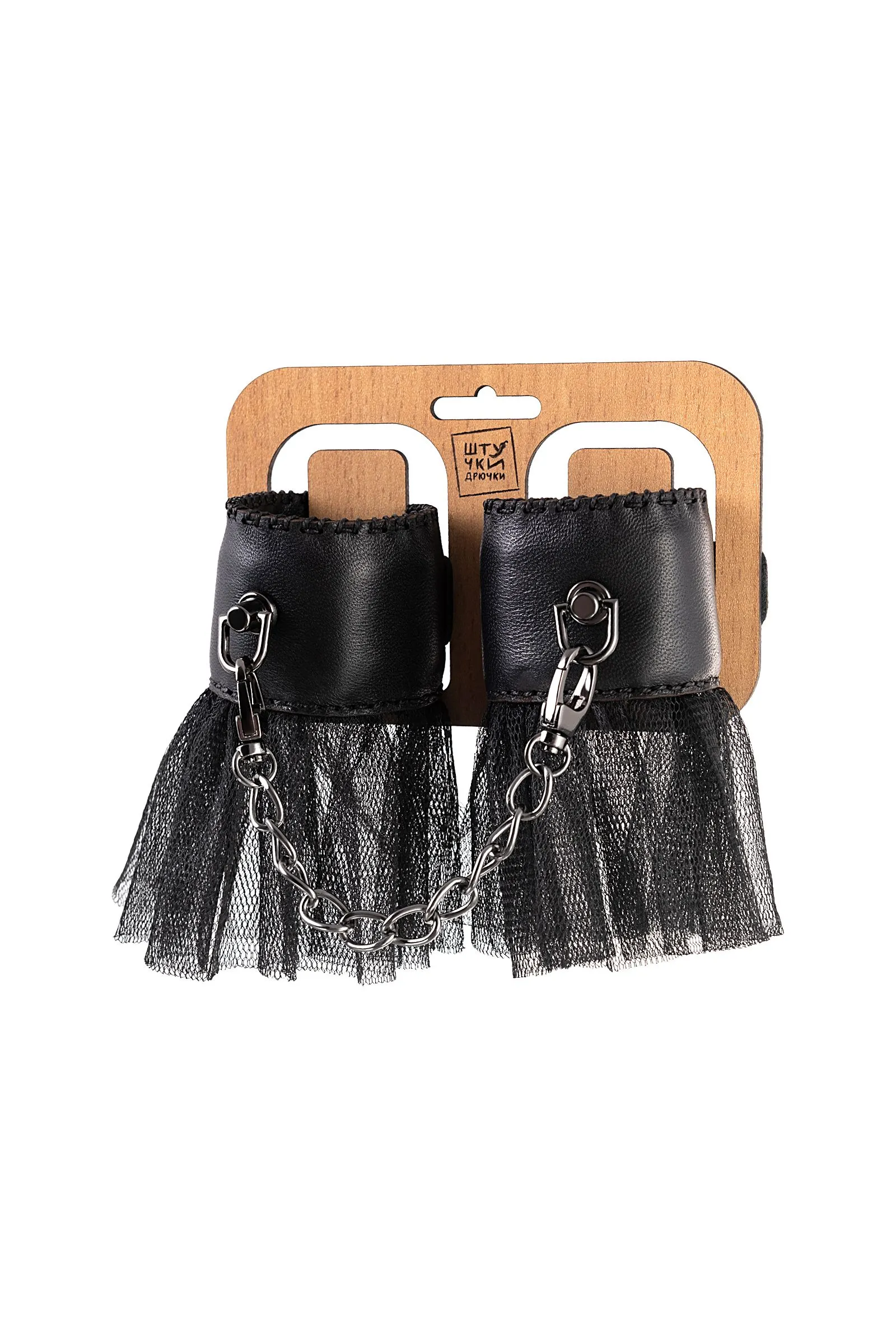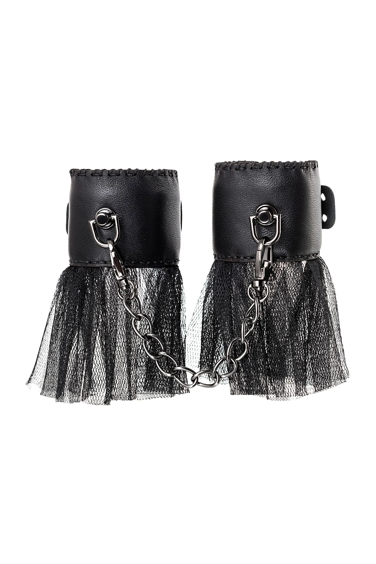 Наручники с сеткой «Штучки-Дрючки» Возбуждающие игры в подчинение, перевоплощение в соблазнительную пленницу или секс-ремейк любимых эпизодов из кино — с наручниками «Штучки-Дрючки» любой сценарий получится с первого дубля. • Мягкий материал наручников и регулируемые заклепки делают игру максимально комфортной: удобно сковывают и не натирают нежную кожу запястий. • Металлическая цепочка надежно удерживает руки «пленницы» даже во время активных действий, не давая ей освободиться. • Сочетание кожи, стальных заклепок и невесомого фатина придают образу дерзости. «Штучки-Дрючки» отлично дополняют ролевые костюмы или комплекты со стрепами. Но самые смелые могут не надевать ничего, кроме этого, стильного аксессуара и выглядеть сногсшибательно. Возьми же кожаные наручники «Штучки-Дрючки» и сыграй свою главную роль!