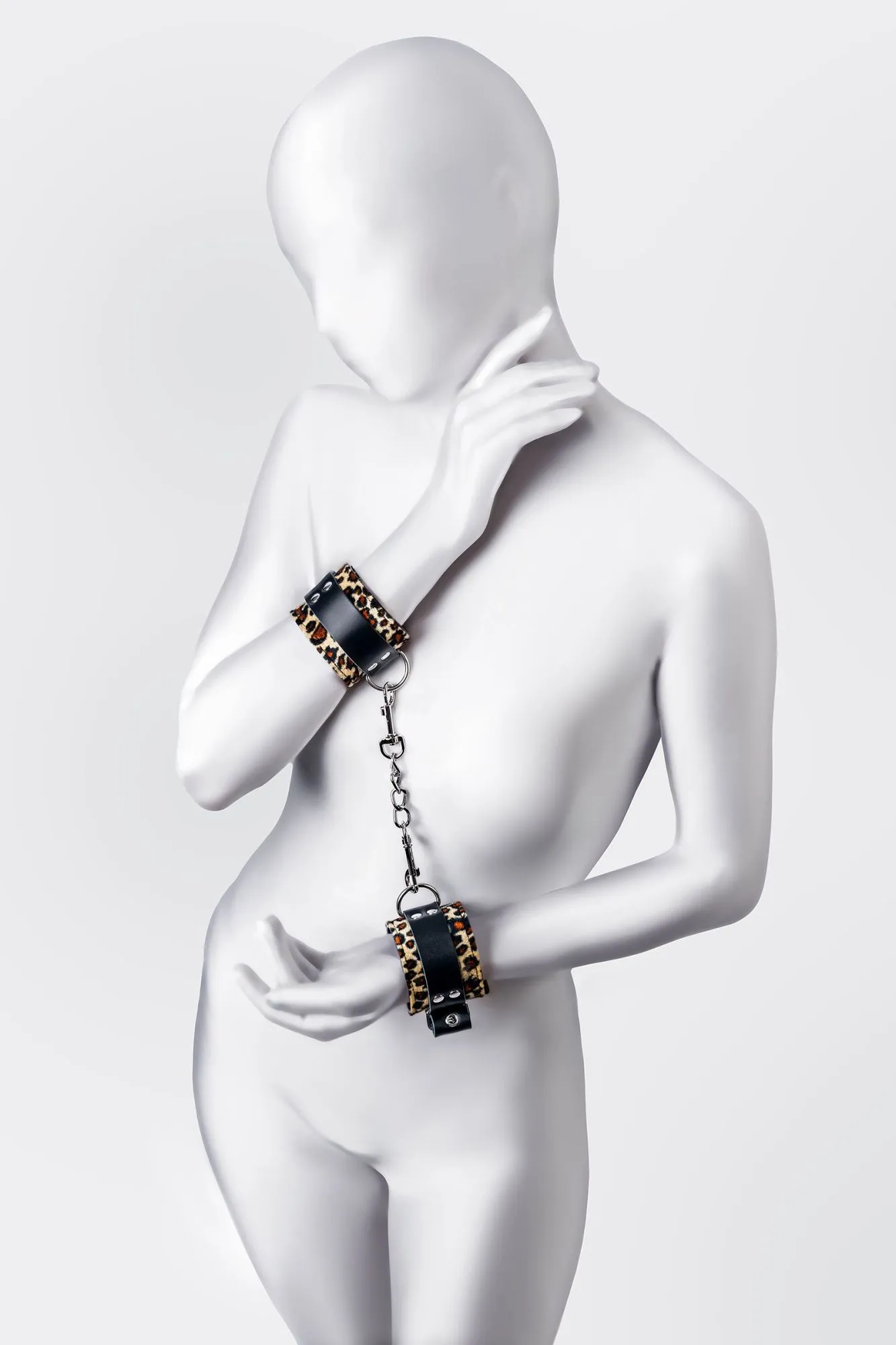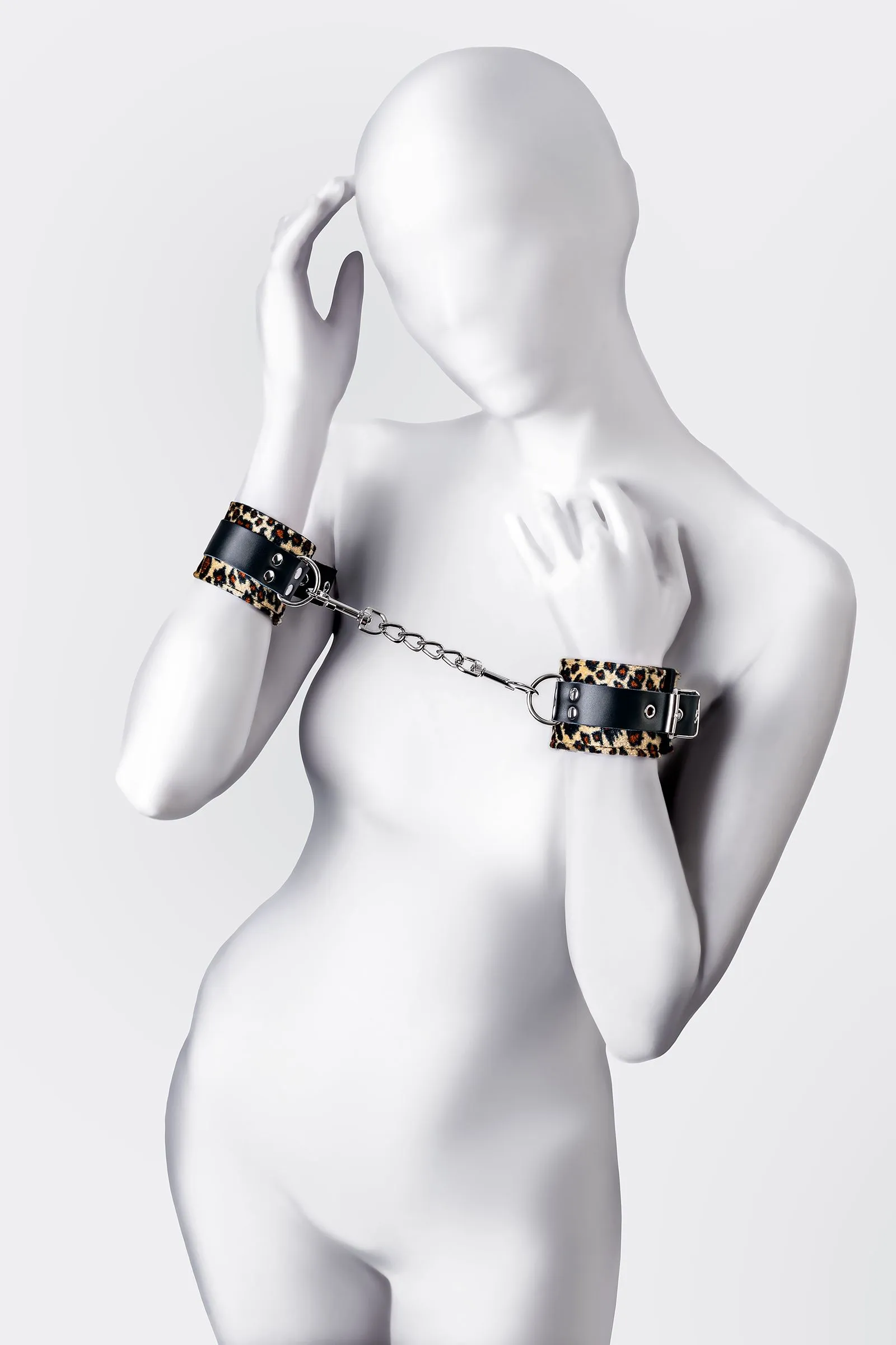 Наручники – классический предмет для игры в подчинение, обязательный для начинающих и опытных поклонников БДСМ. Эти яркие наручники с леопардовым принтом сделают подчиненного неотразимым. Леопардовый окрас демонстрирует агрессивный вид. Все звериное нутро, страсть и свобода призывают действовать. Они отлично сковывают движения благодаря металлической застежке на пряжку. Никакого послабления, только полное подчинение своему Доминанту, где бы ни были зафиксированы руки: впереди или за спиной. Подкладка выполнена из мягкого материала, не причиняет дискомфорта и тактильно приятна. Размер фиксируется ремешком, поэтому наручники подходят для запястья любого размера. Начните игру в подчинение с этим аксессуаром, и вы поймете, как развивать свою чувственность с помощью ограничения свободы одного из партнеров. Дополните комплект аксессуарами - ошейником, кляпом, оковами и продемонстрируйте что значит грубое обращение и полный контроль над свободой. Материал: PU кожа, искусственный мех Цвет: черный, леопардовый Длина: 19,5 см Ширина: 5,5 см Длина сцепки: 15,5 см
