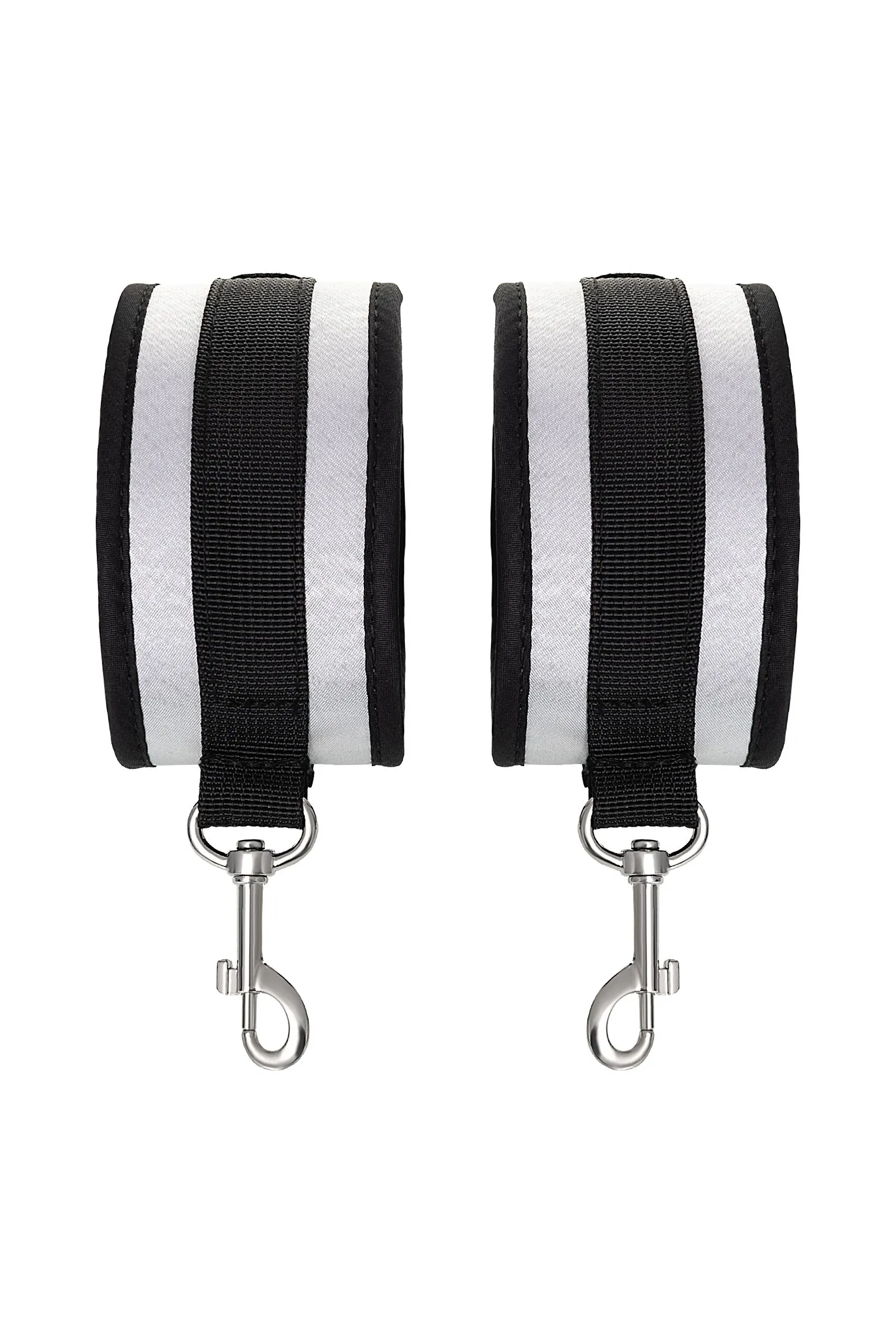 Оковы — классический предмет для игры в подчинение, обязательный для начинающих и опытных поклонников БДСМ. Блестящий во всех смыслах аксессуар для ограничения свободы – сатиновый материал поблескивает, когда на него падает свет. Необычное сочетание серебристого и черного, совсем нехарактерное для классического исполнения аксессуаров в стиле БДСМ, придает изюминку и новизну. Подчиненный с таким аксессуаром выглядит неотразимым. Застежка велкро позволяет зафиксировать ноги любого размера. Между собой поножи скрепляются карабинами, практически не оставляя свободы действий. Никакого послабления, только полное подчинение своему Доминанту. Используйте дополнительно цепочку для расширенных возможностей фиксации положения ног. Начните игру в подчинение с этим аксессуаром, и вы поймете, как развивать свою чувственность с помощью ограничения свободы одного из партнеров. Дополните комплект аксессуарами — ошейником, кляпом, наручниками и продемонстрируйте что значит грубое обращение и полный контроль над свободой. Материал: полиэстер, полипропилен Цвет: черно-серебристый Длина: 28,5 см Ширина: 5,5 см Длина сцепки: 8 см