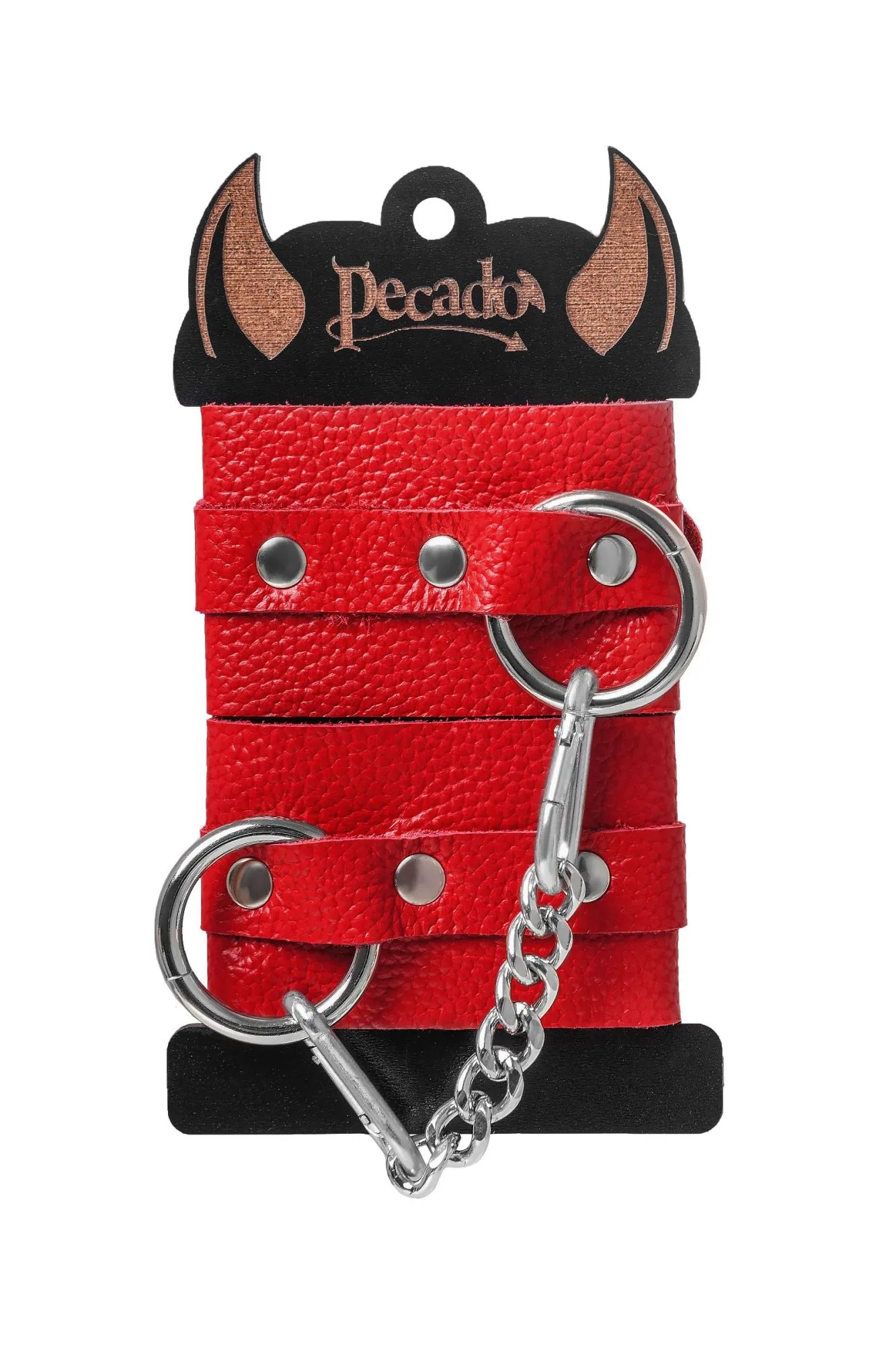 Самый мягкие наручники из всего ассортимента Pecado. Лаконичный дизайн, насыщенно красный цвет и терпкий аромат материала - повышают градус возбуждения в процессе ролевых игр. Наручники выполнены из экологичной и натуральной кожи. Полностью ручная выделка материала обеспечивает хорошую износостойкость. Каждый миллиметр аксессуара очень тактильно приятный. Манжеты и ремешки не мнутся. При правильном использовании не оставляют следов на запястьях. Благодаря стальной застежке и отверстиям с люверсами можно подобрать нужный обхват. Между собой наручники соединены с помощью карабинов и короткой цепочки. При необходимости ее можно снять и заменить на более длинный вариант. Используется для того, чтобы обездвижить партнера и зафиксировать руки в необходимом положении. Подходит как маститым знатокам БДСМ-культуры, так и начинающим парам. ● 100% натуральная кожа. ● Ручная работа. ● Износостойкий, тактильно приятный материал. ● Надежная высококачественная фурнитура. ● Универсальный размер. ● Длина манжет – 18 см, ширина манжет - 5,5 см, длина сцепки – 20 см.