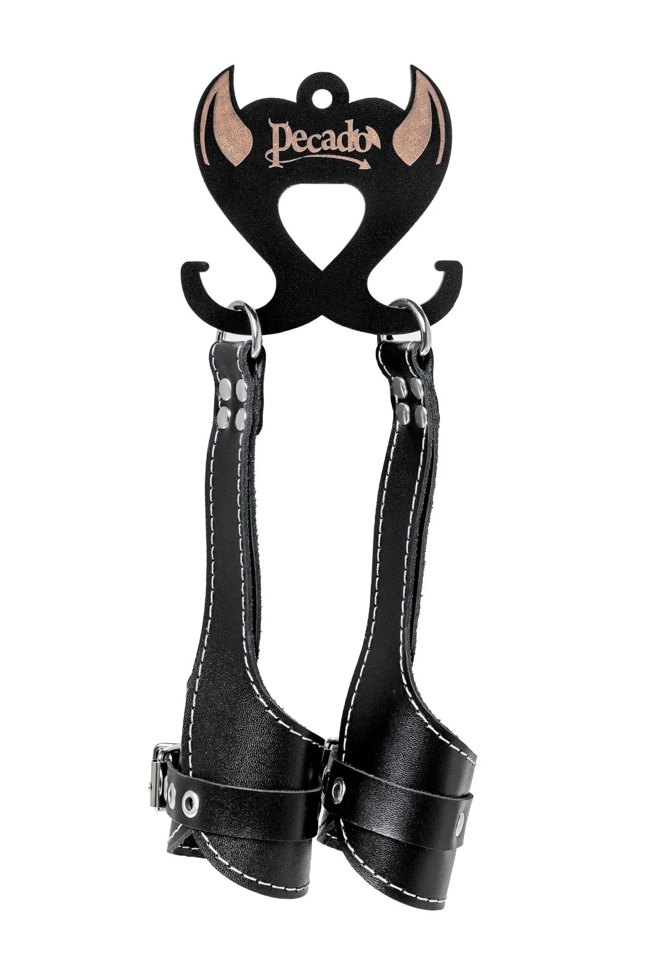 Подвес для рук от Pecado – надежный помощник для воплощения Ваших фантазий и желаний. Используется для БДСМ-игр с элементами подвеса и фиксации рук по отдельности. Конкретная модель изготовлена из мягкой, натуральной кожи вручную. Материал прочный и в меру толстый. Девайс очень прост и легок в применении. Благодаря анатомической форме, аксессуар удобно фиксирует руки нижнего партнера в положении вверх. Застегивается с помощью застежки и ремешка с широким запасом регулировок. При правильном использовании не нарушает кровообращения и исключает вероятность получения травмы. ● 100% натуральная кожа. ● Износостойкий, тактильно приятный материал ● Надежная высококачественная фурнитура. ● Универсальный размер. ● Ширина манжет 5,5 см, длина манжет 19,5 см, длина манжет – 20,5 см.