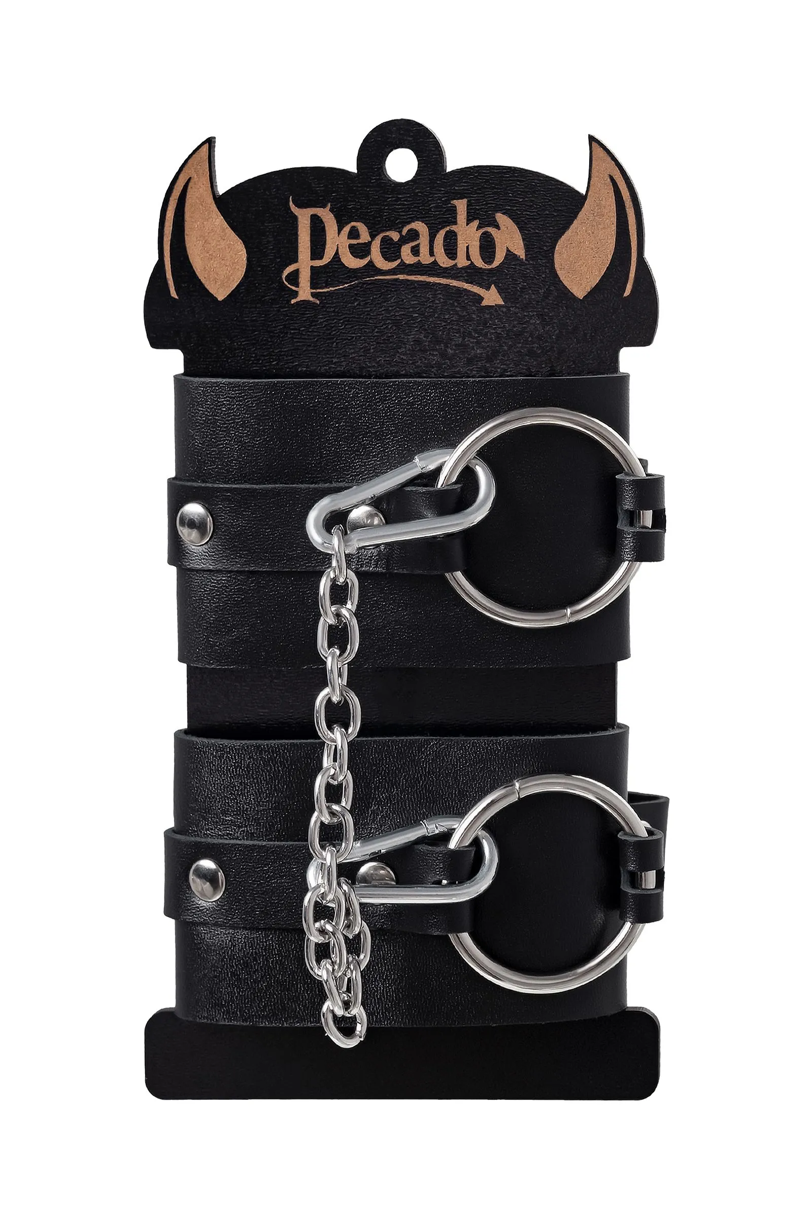 Брутальные оковы от российского производителя Pecado привнесут в ролевые игры новые ощущения! Благодаря им легко обездвижить и зафиксировать ноги партнера в необходимом положении. Аксессуар полностью изготовлен из экологичной натуральной кожи. Материал устойчив к нагрузкам и долговременному использованию. На оковах имеется широкий запас регулировок, благодаря чему можно легко подобрать нужный обхват. Качественная никелированная металлофурнитура в серебристом цвете добавляет изюминку. Каждая манжета комплекта соединена цепью. С помощью колец, можно надежно фиксировать и другие аксессуары. Данный атрибут для ролевых игр отлично подходит в качестве подарка партнеру. Для истинных любителей властвовать и подчиняться! ● 100% натуральная кожа. ● Ручная работа. ● Износостойкий, тактильно приятный материал. ● Надежная высококачественная фурнитура. ● Универсальный размер. ● Длина манжет – 27 см, ширина манжет - 6 см, длина сцепки – 20 см.