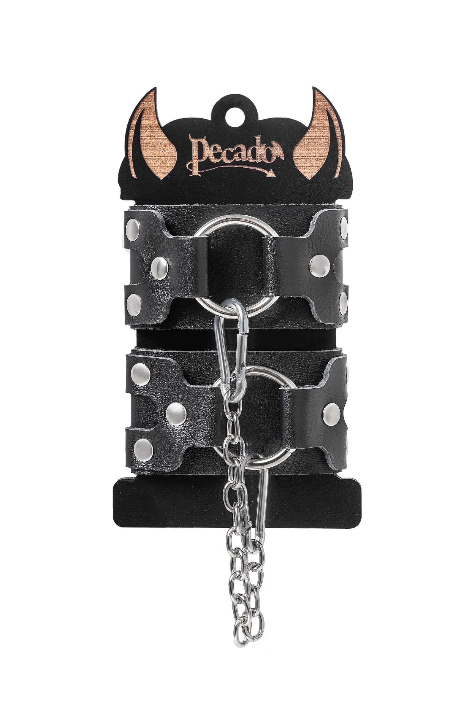 Одни из самых брутальных наручников в линейке Pecado. Стильные, надежные и устойчивые к долгим нагрузкам. Они созданы, чтобы дарить непередаваемые ощущения в ролевых играх. Изготовлены из прочной и натуральной кожи черного цвета. Ручная выделка материала обеспечивает высокую износостойкость. Заметная толщина аксессуара обеспечивает хорошую посадку на запястьях. На манжетах имеются ремешки с широким запасом регулировок, благодаря чему можно легко подобрать нужный обхват. Надежная высококачественная фурнитура хорошо фиксирует атрибут на руках. При правильном использовании не оставляет следов на теле. Между собой наручники соединены короткой, съемной цепью с двумя карабинами. При желании ее можно заменить на другой аксессуар. Данный сексуальный девайс можно использовать не только для БДСМ-сессий. А также, как стильный браслет в своем ежедневном образе. Идеально подходит и мужчинам, и женщинам, и начинающим, и опытным парам. Наслаждайтесь ролевыми играми! Вместе с Pecado. ● 100% натуральная кожа. ● Ручная работа. ● Износостойкий, тактильно приятный материал. ● Надежная высококачественная фурнитура. ● Универсальный размер. ● Длина манжет – 15 см, ширина манжет - 5 см, длина сцепки – 24 см.